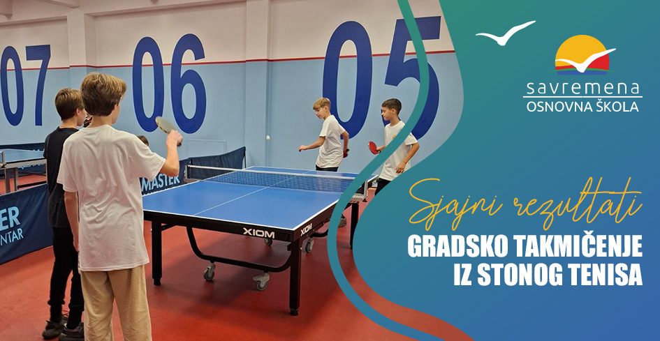 Učenici Savremene osnovne škole učestvovali su na gradskom takmičenju u stonom tenisu i ostvarili zapažene rezultate u konkurenciji više od 30 škola i 96 takmičara iz cele prestonice. Naši predstavnici pokazali su izuzetan sportski duh, borbenost i timski rad, čime su još jednom potvrdili da Savremena neguje i podstiče različite talente svojih učenika.
