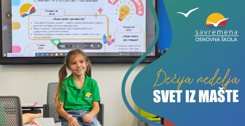 Povodom Dečije nedelje, učenici Savremene osnovne škole učestvovali su u jednoj od najlepših aktivnosti – „Imam pravo da maštam“. Cilj je bio da se deca slobodno izraze, podele svoje snove i pokažu kako zamišljaju idealan svet. Sedeći na „Čarobnoj stolici mašte“, učenici su zatvarali oči i zamišljali svet po svojoj meri, a zatim glasno govorili […]
