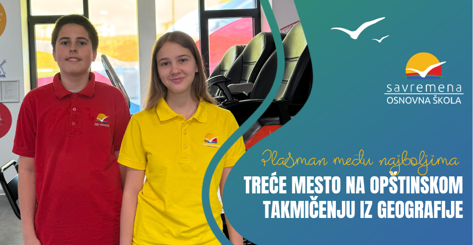 Učenici Savremene osnovne škole, Lola Čamparević (8/1) i Mateja Jut (7/1), ostvarili su zapažen uspeh osvojivši treće mesto na opštinskom takmičenju iz geografije, koje je održano 15. marta u Osnovnoj školi „Dragan Lukić“. Njihov rezultat predstavlja još jednu potvrdu kvaliteta znanja i ozbiljnog pristupa učenju koji negujemo u Savremenoj. U konkurenciji od čak 200 učenika, […]