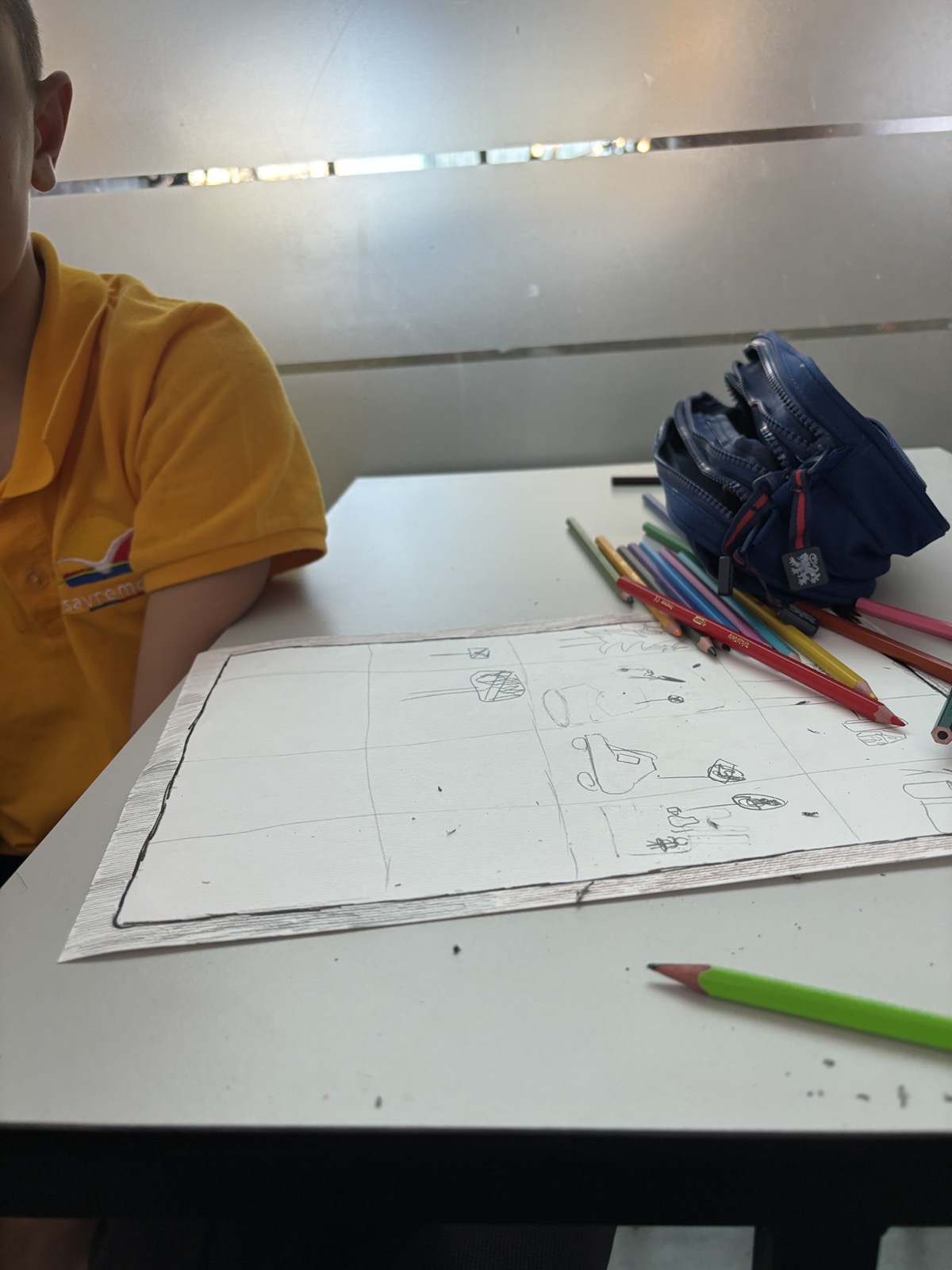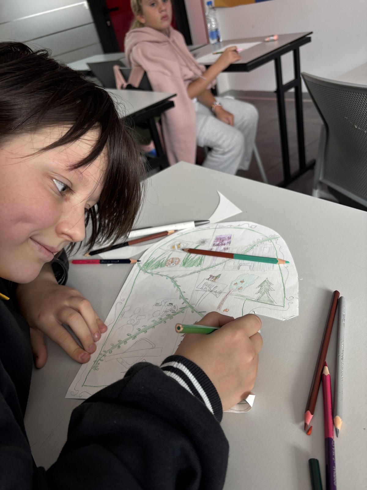 Kroz ovu radionicu deca su imala priliku da pokažu kako mašta i umetnost mogu biti moćan alat za promene. Svaki rad nosio je jedinstvenu poruku i deo ličnog pogleda na svet, a kada su svi spojeni — nastala je velika grupna kompozicija, simbol zajedničke potrage za boljim svetom. 🌟