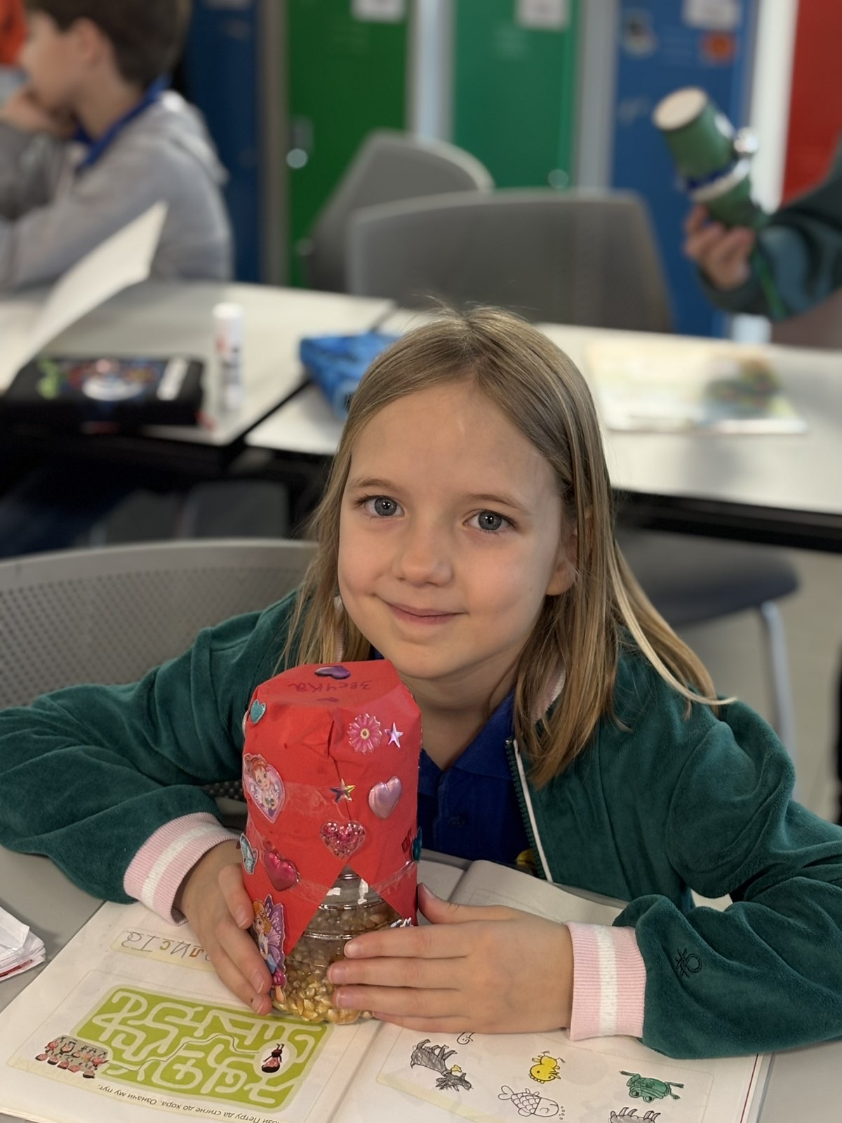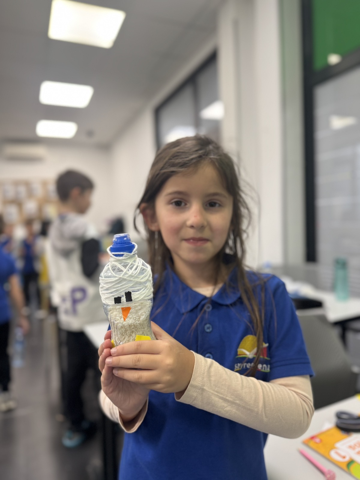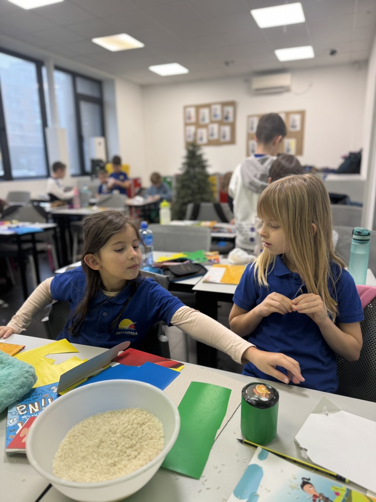Atmosfera u učionici bila je puna uzbuđenja dok su mališani biralI šta će staviti u svoje flaše – pasulj, pirinač, šargarepu ili možda kombinaciju svega. Svaki materijal davao je drugačiji zvuk, a deca su to brzo primetila. Neko je želeo dubok, prigušen zvuk pa je izabralo krupnije zrnevlje, dok su drugi voleli oštar, zvonki zvuk sitnijeg pirinča. Svaka zvečka bila je jedinstvena, baš kao i dete koje ju je napravilo. Učenici su razumeli da muzika nije samo ono što čujemo na radiju – muzika je svuda oko nas, samo treba znati kako da je prepoznamo i stvorimo.