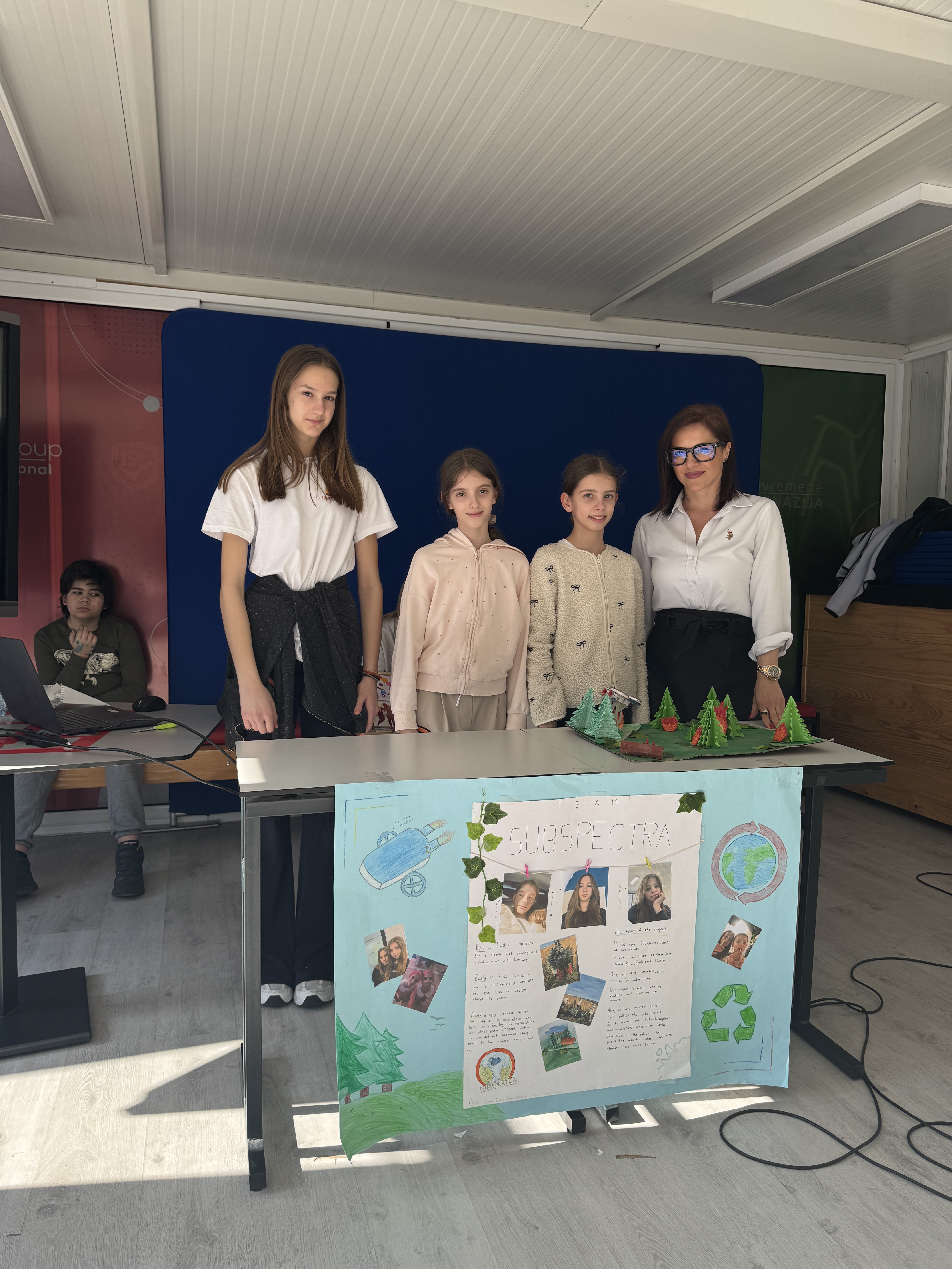 Tim SubSpectra (Marija Simić, Emily Franciskovic, Kira Franciskovic) dizajnirao je robot koji detektuje požare u šumama i gasi ih pre nego što se prošire. Napravili su maketu robota sa četiri rezervoara za vodu, simulirali požar i prikazali kako tehnologija može da spasi prirodu. Pored toga, učestvovali su u sadnji drveća – jer spasiti ono što već postoji nije dovoljno, treba i saditi novo.
