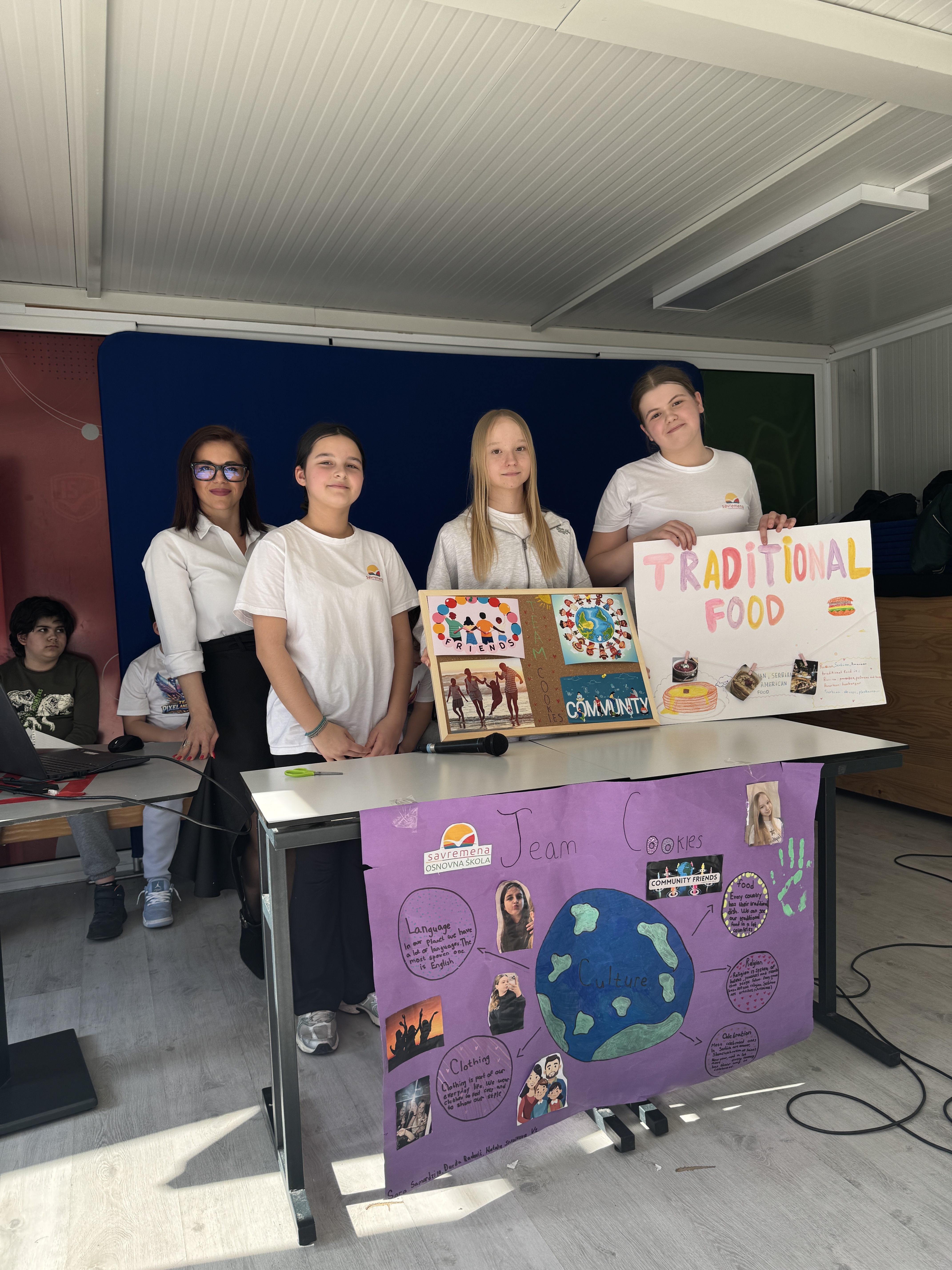 Tim Cookies (Unity) (Djurdja, Nata, Sara) istraživao je zajedništvo – kako porodica, prijateljstvo i zajednica grade stabilnost, sigurnost i identitet. Uporedili su srpske, ruske i američke tradicije, prikazali kako se slave praznici, kako muzika i tradicija povezuju ljude. I postavili pitanje: šta radite sa porodicom u slobodno vreme? Da li mislite da je prijateljstvo važno? Jer to nisu retoričke teme – to su osnove na kojima se gradi društvo.