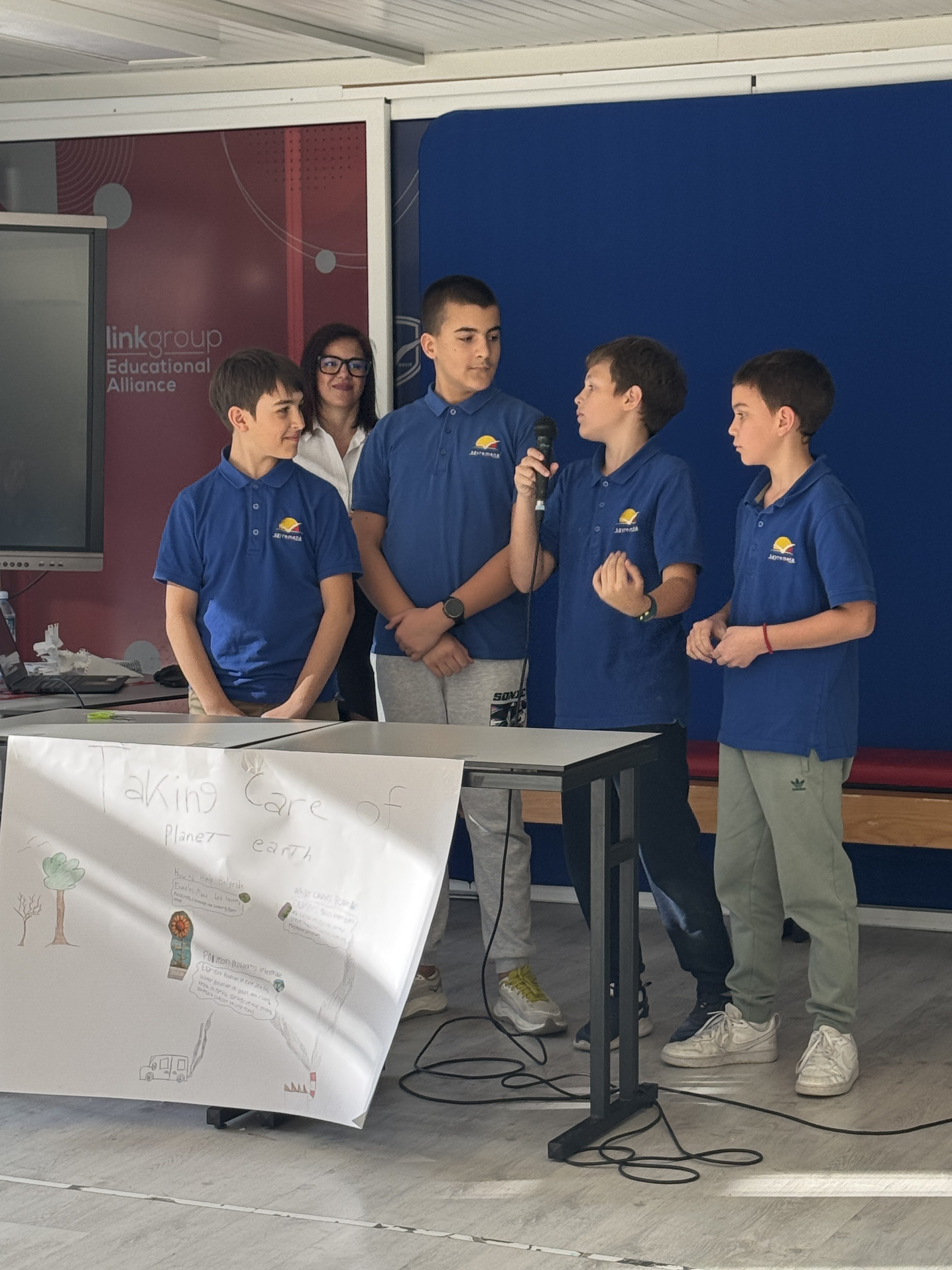 Timovi za zaštitu planete (Ognjan, Boris, Andrija, Marko i drugi) sakupljali su plastiku, organizovali čišćenje, prodavali grickalice da bi zaradili novac za opremu, postavljali kante za reciklažu u vrtićima i bazenima. Jedan tim čistio je lišće u vrtiću “Bibi” 2-3 sata, zaradio 4000 dinara, kupio materijal za kante za reciklažu i postavio ih na mestima gde se reciklaža zaista dešava. To nije teorija – to je akcija.