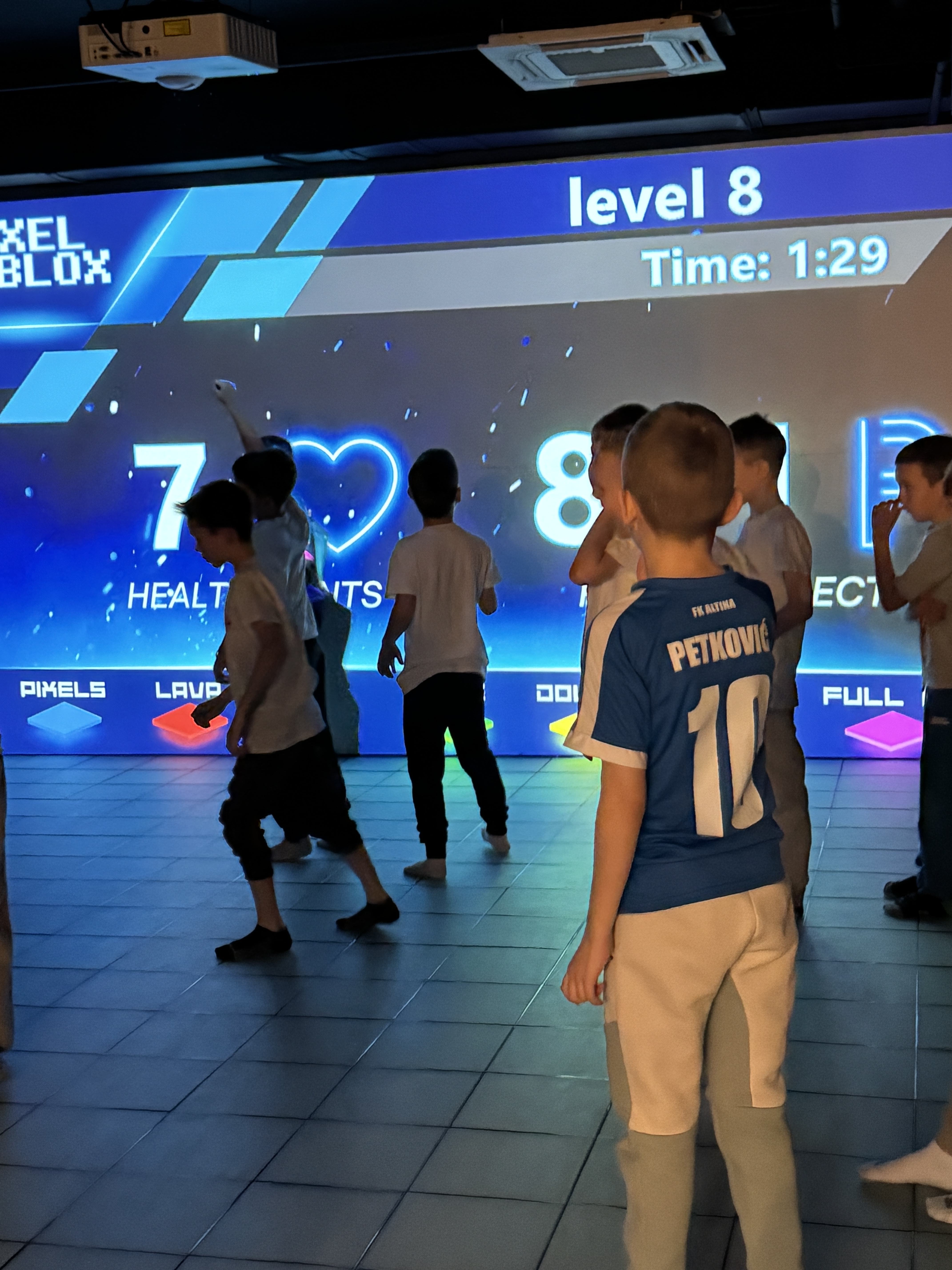 Tokom boravka u Pixel Blox igraonici, učenici su učestvovali u različitim interaktivnim igrama koje su zahtevale brzo razmišljanje, snalažljivost i saradnju sa vršnjacima. Svetlosni paneli koji menjaju boje i reaguju na dodir postali su poligon za različite izazove – od brzinskih zadataka do timskih aktivnosti koje su podsticale zajedničko rešavanje problema.