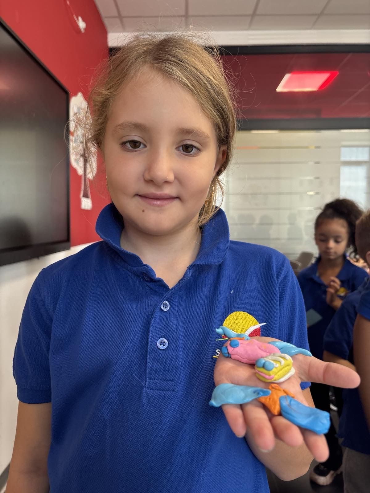 Na časovima likovne kulture, predškolci Savremene su imali priliku da koriste plastelin kako bi stvorili životinje iz svog sveta mašte. Ova aktivnost nije samo bila zabava – ona je deci pomogla da kroz kreativnost razvijaju fine motoričke veštine, kao i sposobnost koncentracije. Kroz pravljenje životinja, mališani su učili da prate oblike i detalje, što je važno za razvoj njihovih kognitivnih sposobnosti. Osim toga, plastelin im je omogućio da se izraze na jedinstven način, stvarajući lične umetničke radove koji odražavaju njihove emocije i ideje. Deca su kroz proces igre učila da povežu svoje osećaje sa stvaranjem, čime su razvijala emocionalnu pismenost i samosvest.
