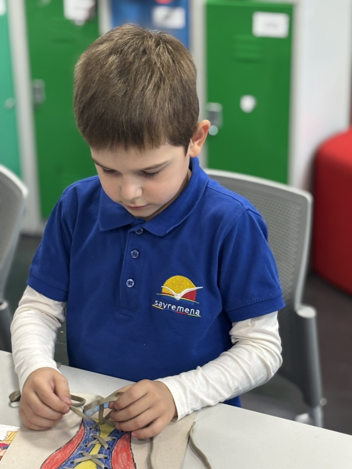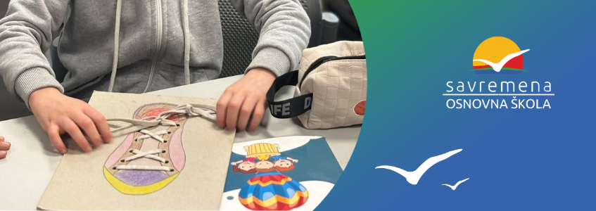 Učionica Savremene osnovne škole ove nedelje bila je ispunjena radošću, koncentracijom i mnogo ponosa – naši učenici imali su priliku da kroz praktične vežbe savladaju jednu od prvih malih životnih veština koje donose veliku samostalnost: vezivanje pertli. Čas građanskog vaspitanja pretvorio se u divnu kombinaciju igre, kreativnosti i učenja kroz iskustvo, a rezultati su bili jednako korisni koliko i simpatični.