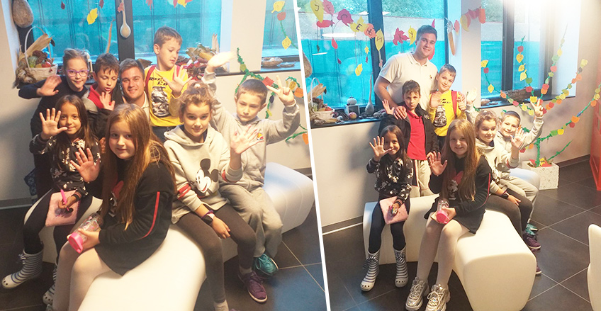 Među školarcima nije nedostajalo kreativnog duha – pored listića u bojama jeseni, nastavnici su im pokazali i kako na najjednostavniji način mogu da naprave korpicu za voće i povrće. Među učenicima je jesenja energija pobudila mnogo novih ideja – papir, drvca i bojice iskoristili su da naprave i gnezdo i ptičice, a žirovima, šišarkama i kestenjem ukrasili su ovaj kutak, koji će tokom jeseni školarcima služiti da se između časova ovde sastaju i razmenjuju nove ideje.
