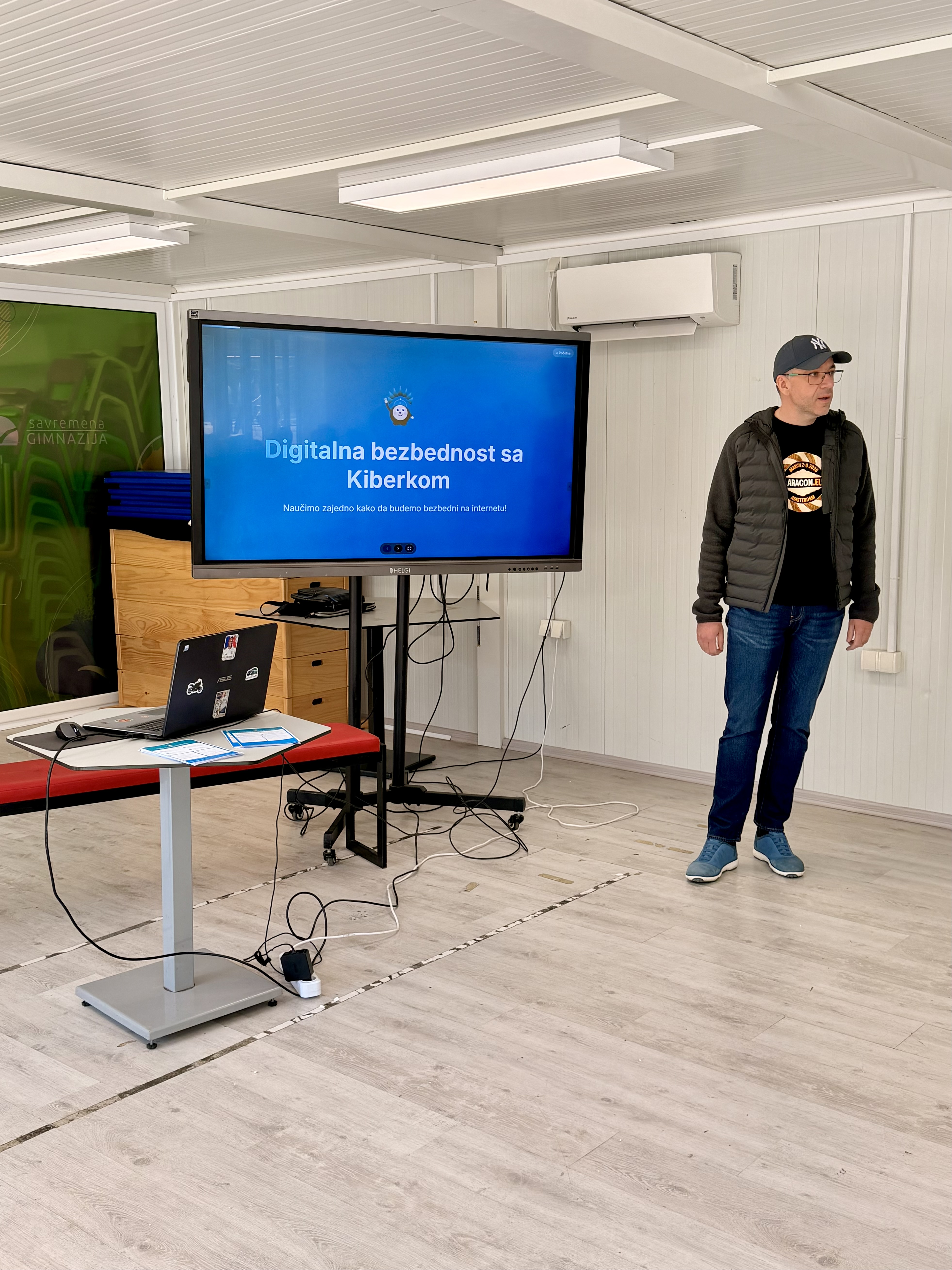 Radionicu je vodio gostujući predavač Zoran Stanković, programer i ekspert iz oblasti informacionih tehnologija, ali i roditelj našeg učenika Mihala iz odeljenja II-2. Njegov pristup, zasnovan na realnim primerima i neposrednoj komunikaciji sa decom, omogućio je učenicima da na razumljiv i zanimljiv način uđu u svet digitalne bezbednosti. Kroz razgovor, pitanja i zajedničko promišljanje, učenici su aktivno učestvovali u svakoj fazi radionice.