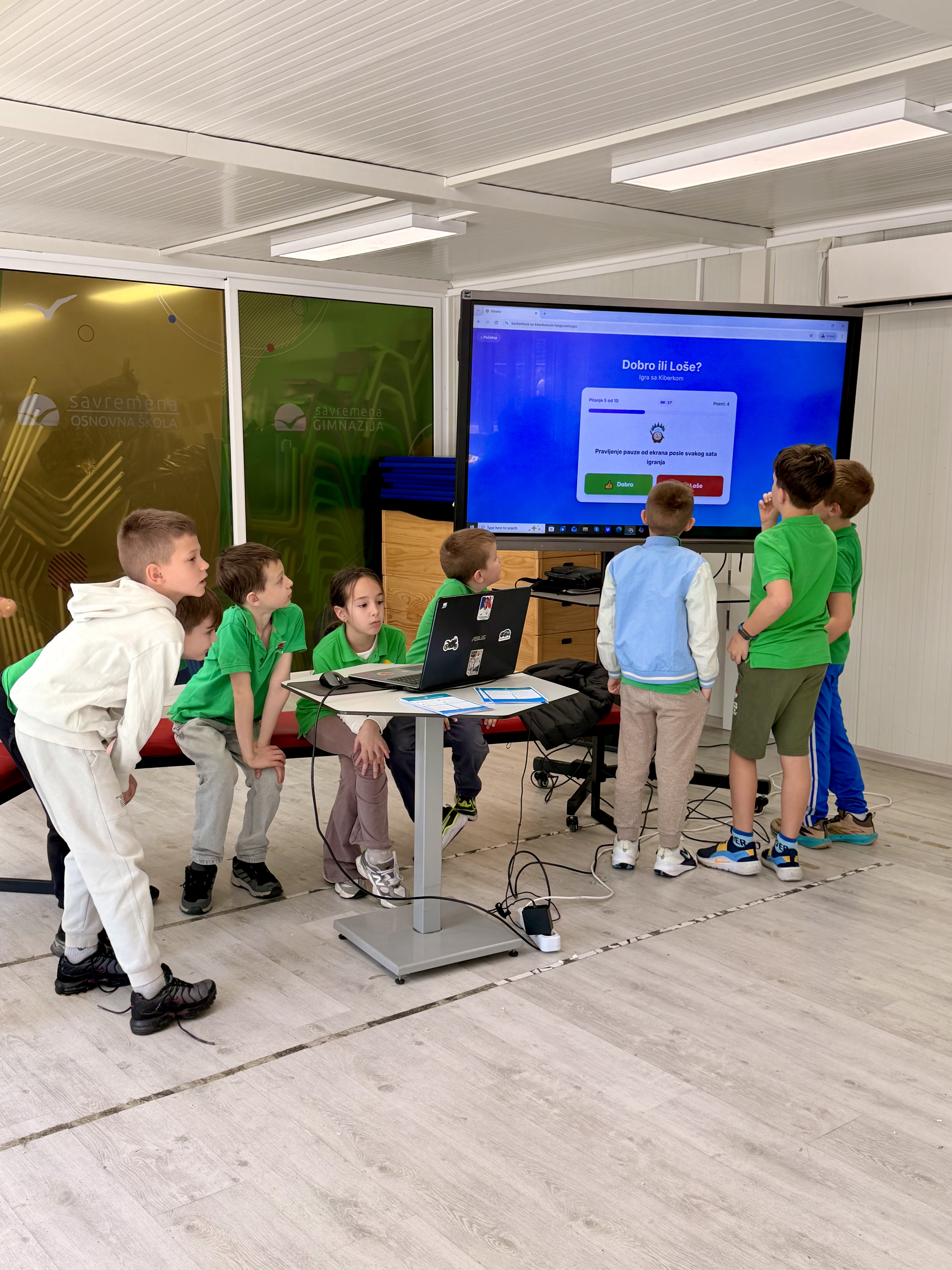 Jedan od najvažnijih segmenata radionice bio je razvoj kritičkog mišljenja. Učenici su podstaknuti da razmišljaju o posledicama svojih odluka i da prepoznaju razliku između bezbednog i rizičnog ponašanja na internetu. Kroz pitanja poput „Da li je u redu podeliti ovu informaciju?“ ili „Kako znamo da je nešto pouzdano?“, deca su učila da zastanu, promisle i donesu odgovornu odluku.