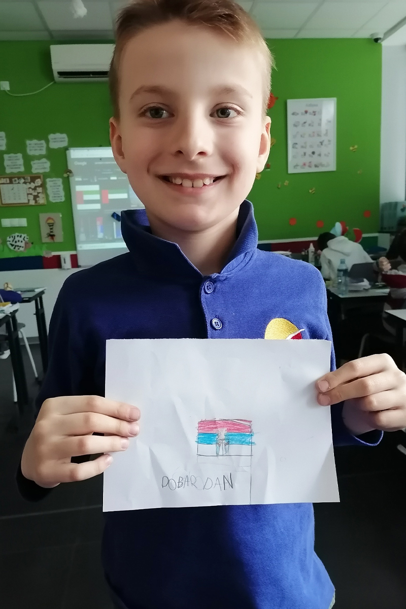 Učenici prvog razreda su takođe obeležili Međunarodni dan maternjeg jezika. Naučili su šta je to maternji jezik, zašto učimo svoj, a zašto tuđe jezike, i zbog čega je važno negovati sopstveni, a uvažavati druge jezike. Crtali su različite zastave i pozdrave na tim jezicima.