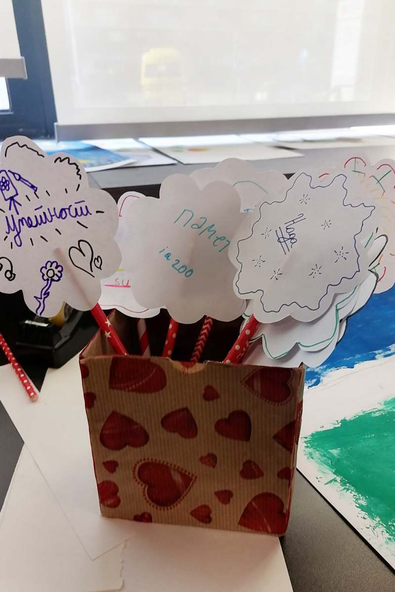 U poslednjem delu časa učenici su na papirićima u obliku cveta zapisivali one reči (rečenice, izraze) za koje su definitivno zaključili da predstavljaju pojam koji im mnogo znači. Tako je nastao zajednički buket sačinjen od malih cvetova kao podsetnik na važnost i snagu jezika, koji je potrebno – poput cveta – negovati.