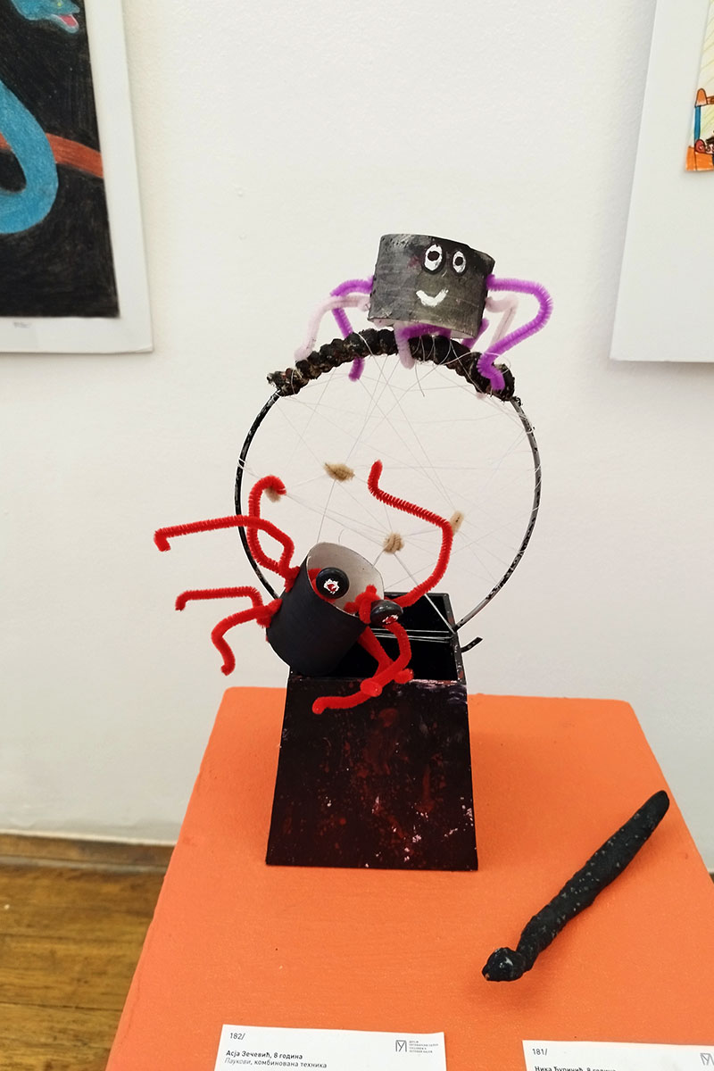 Posebno smo ponosni na rad pod nazivom „Osećanja”, koji je izložen na prestižnom Dečijem oktobarskom salonu. Autor ovog izuzetnog dela je naš učenik Boris Radibratović iz odeljenja III-3.