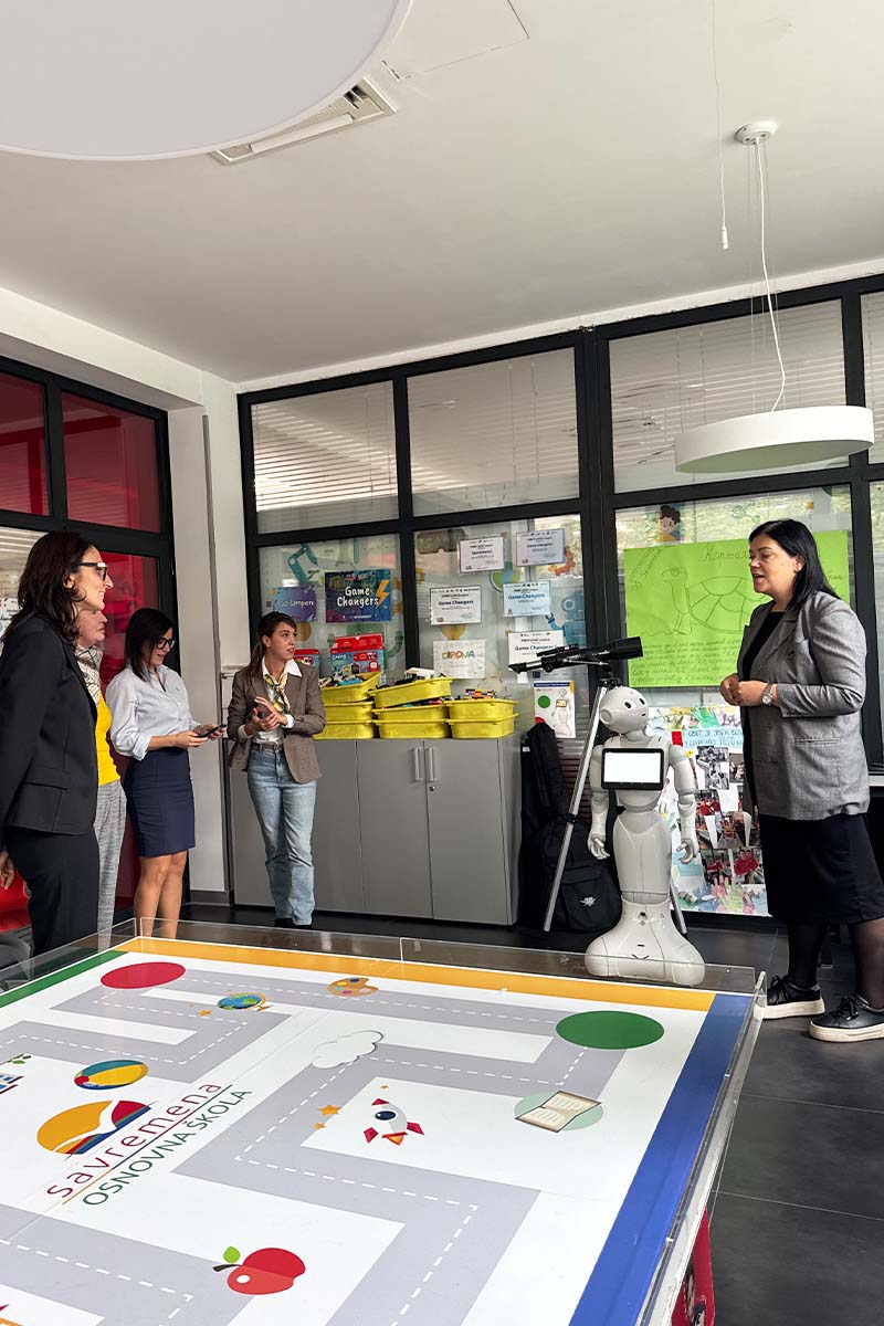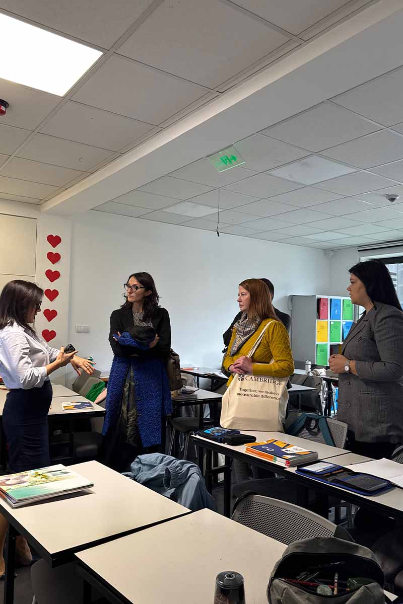 Gosti su obišli učionice i školski prostor, upoznali se sa načinom rada i interaktivnim pristupom nastavi. Posebnu pažnju privukao je robotics kabinet, u kojem su učenici demonstrirali kako kroz savremene tehnologije uče i razvijaju digitalne veštine. Predstavnici Cambridge-a istakli su da je upravo ovakav spoj obrazovanja i tehnologije ono što savremeno obrazovanje izdvaja i čini ga relevantnim za budućnost.