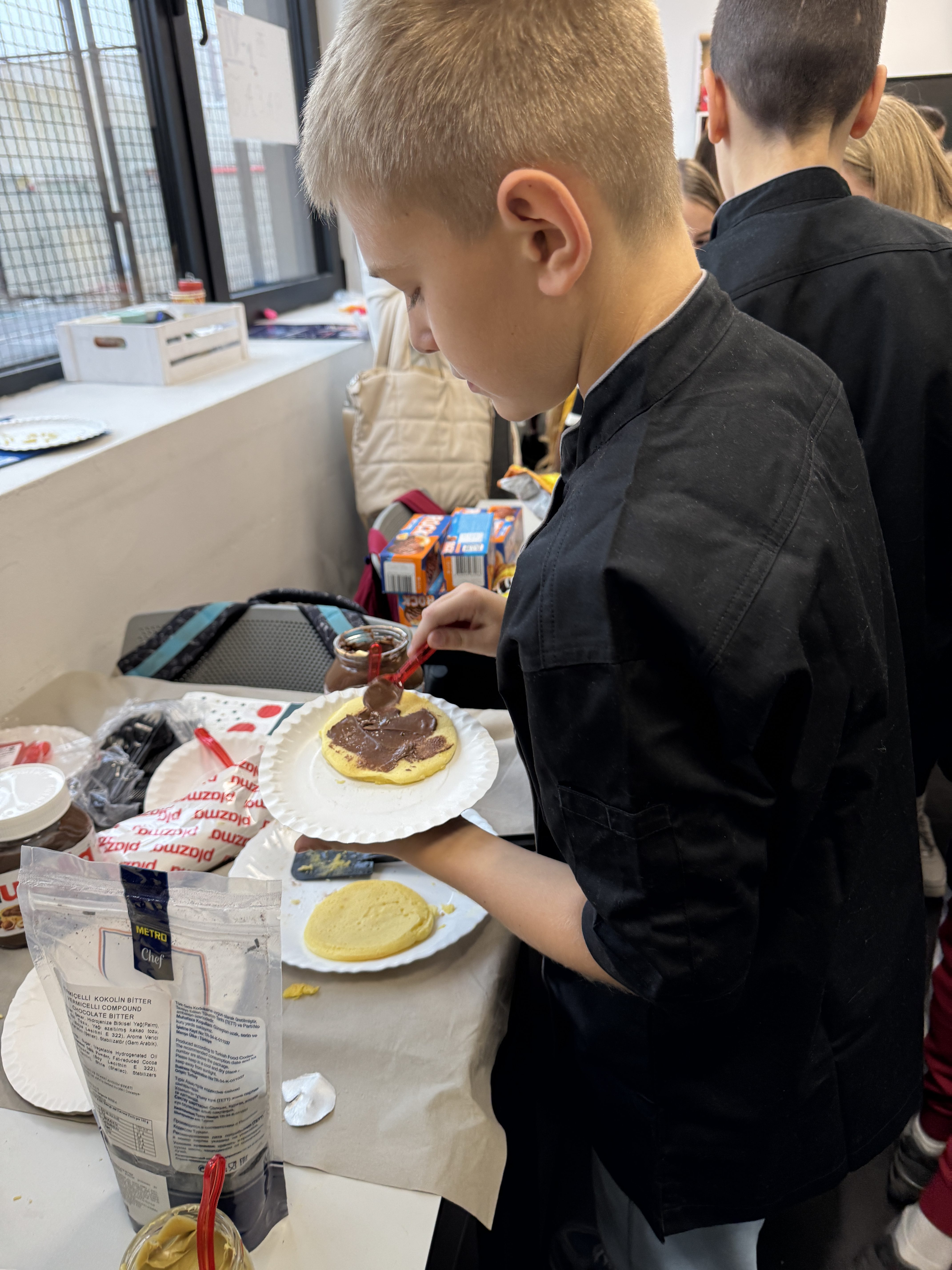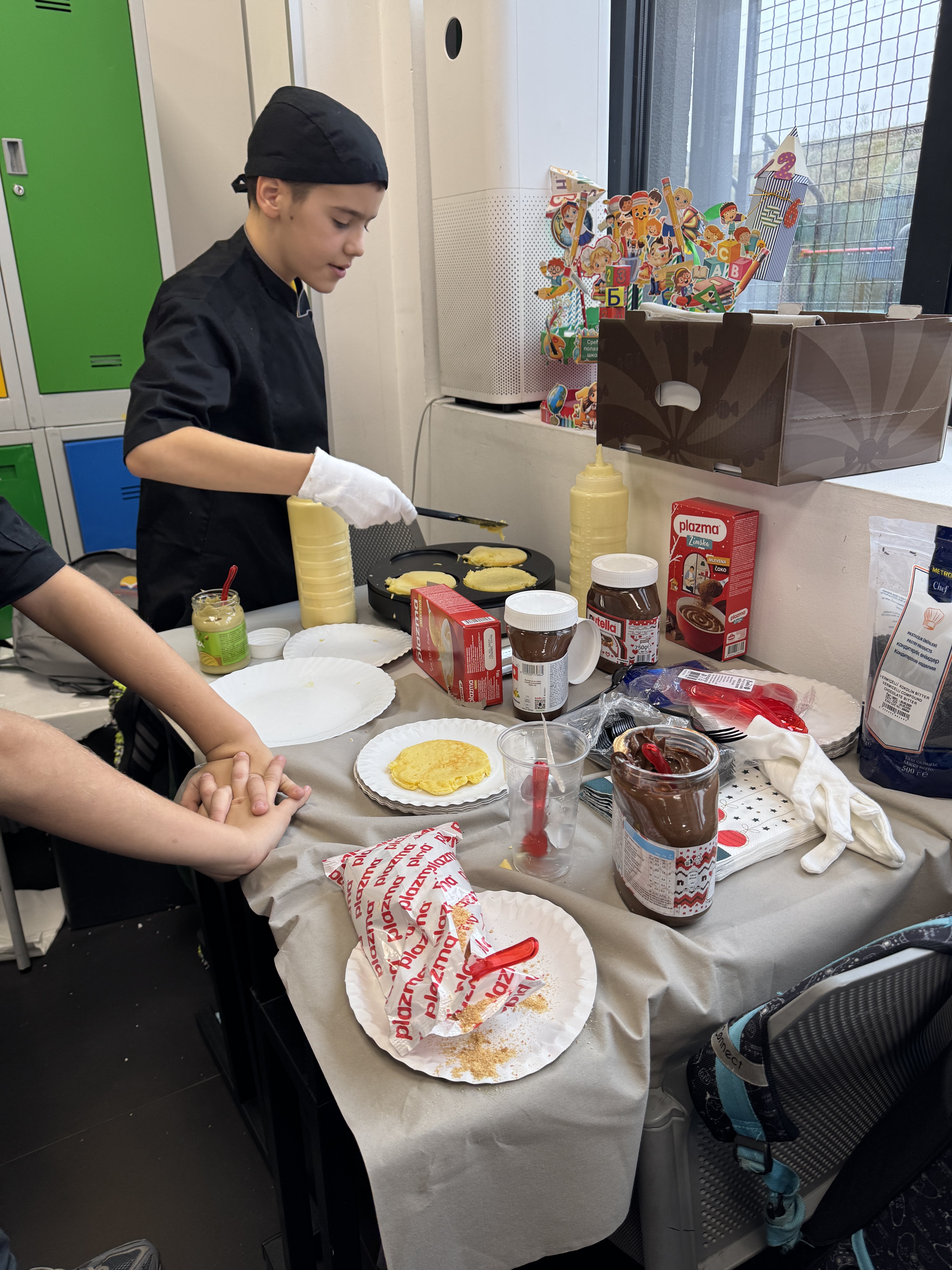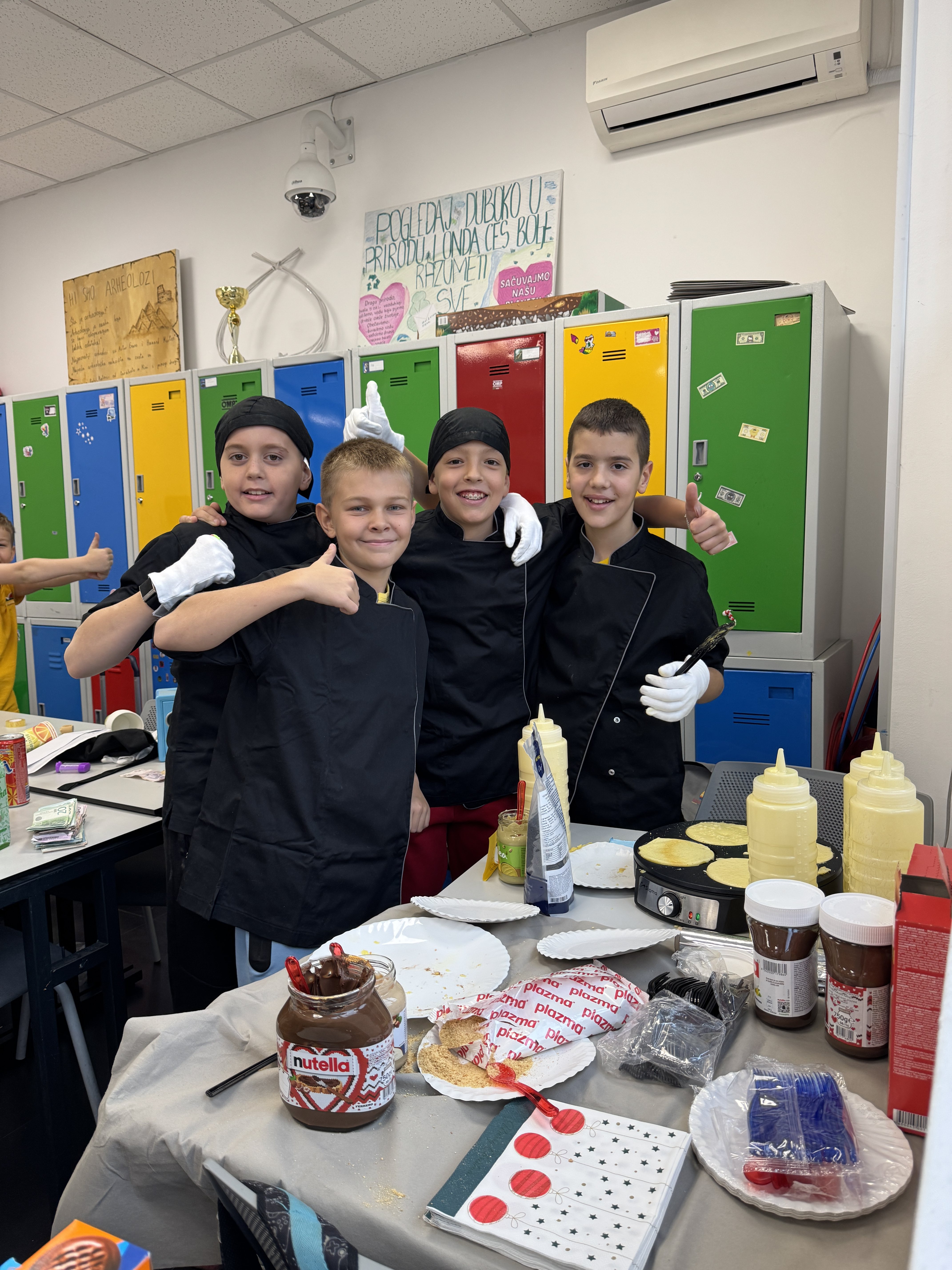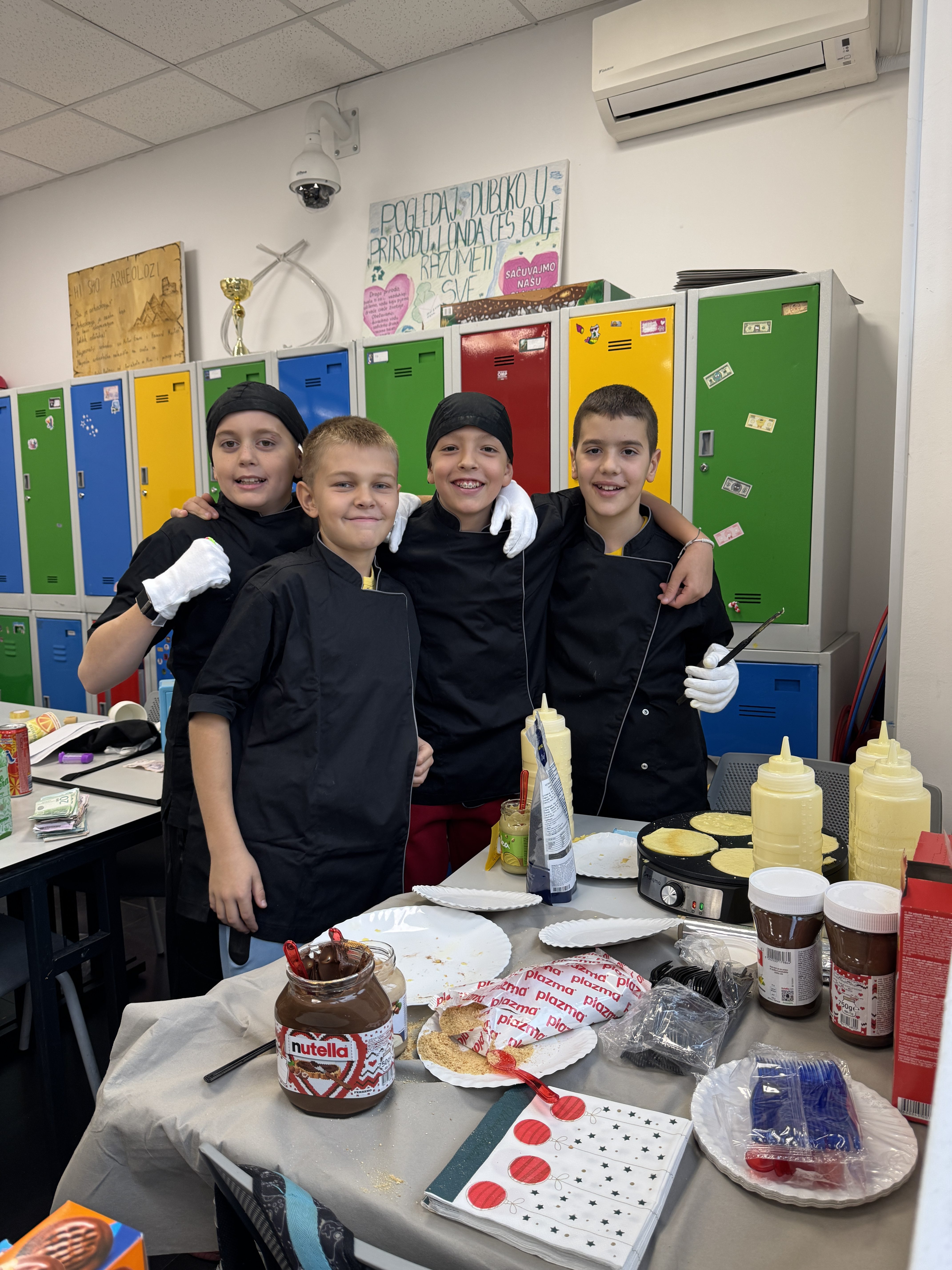 Neki učenici su se organizovali u kulinarske timove — obukli su crne uniforme, stavili rukavice i pretvorili svoj sto u mini kuhinju iz koje su izlazile palačinke na koje su se redovi kupaca rado vraćali. Za mnoge je ovo bio prvi susret sa radom u pravoj maloj „poslastičarnici”, gde je trebalo misliti i o higijeni, i o redosledu porudžbina, i o brzini pripreme.