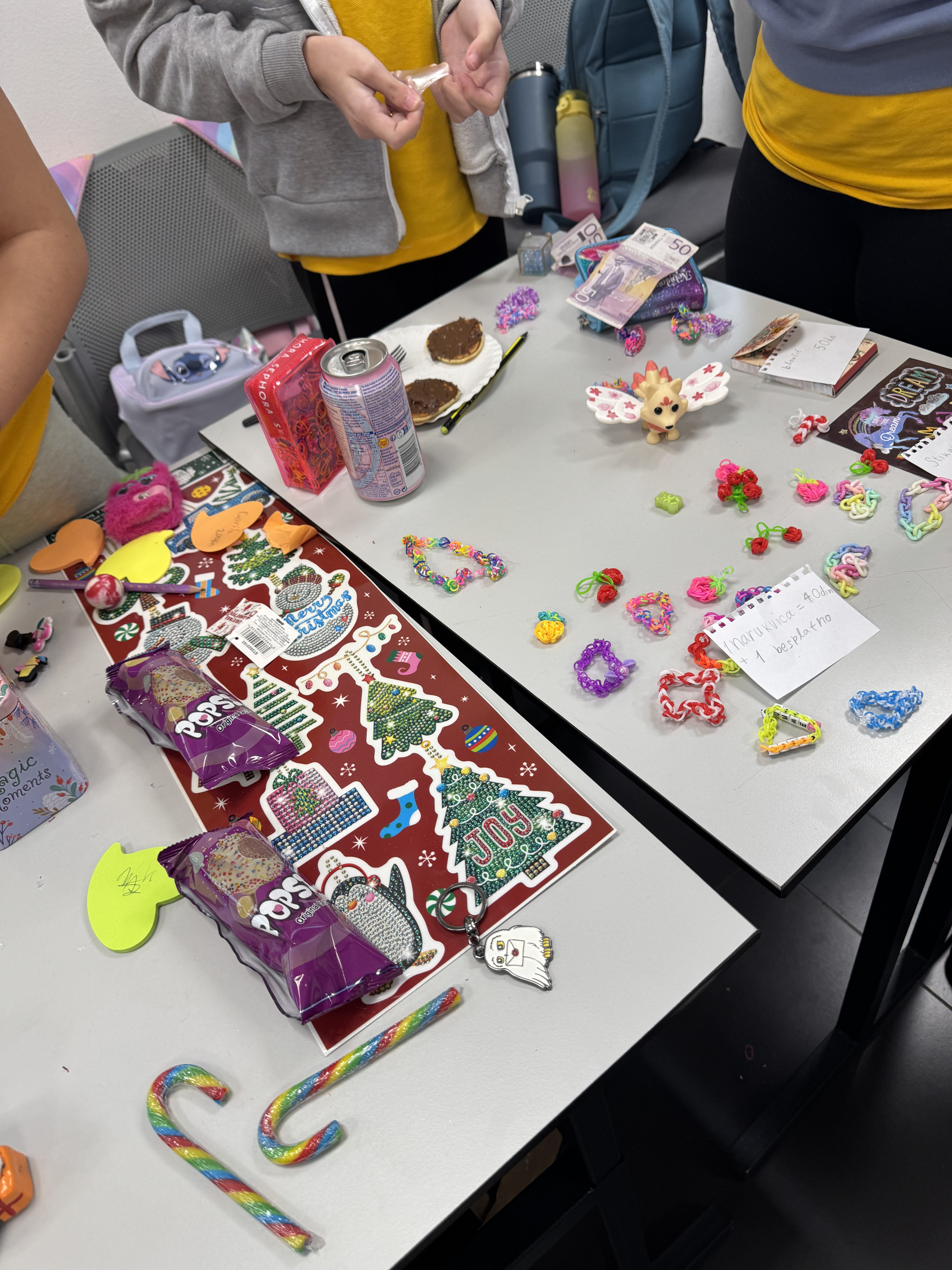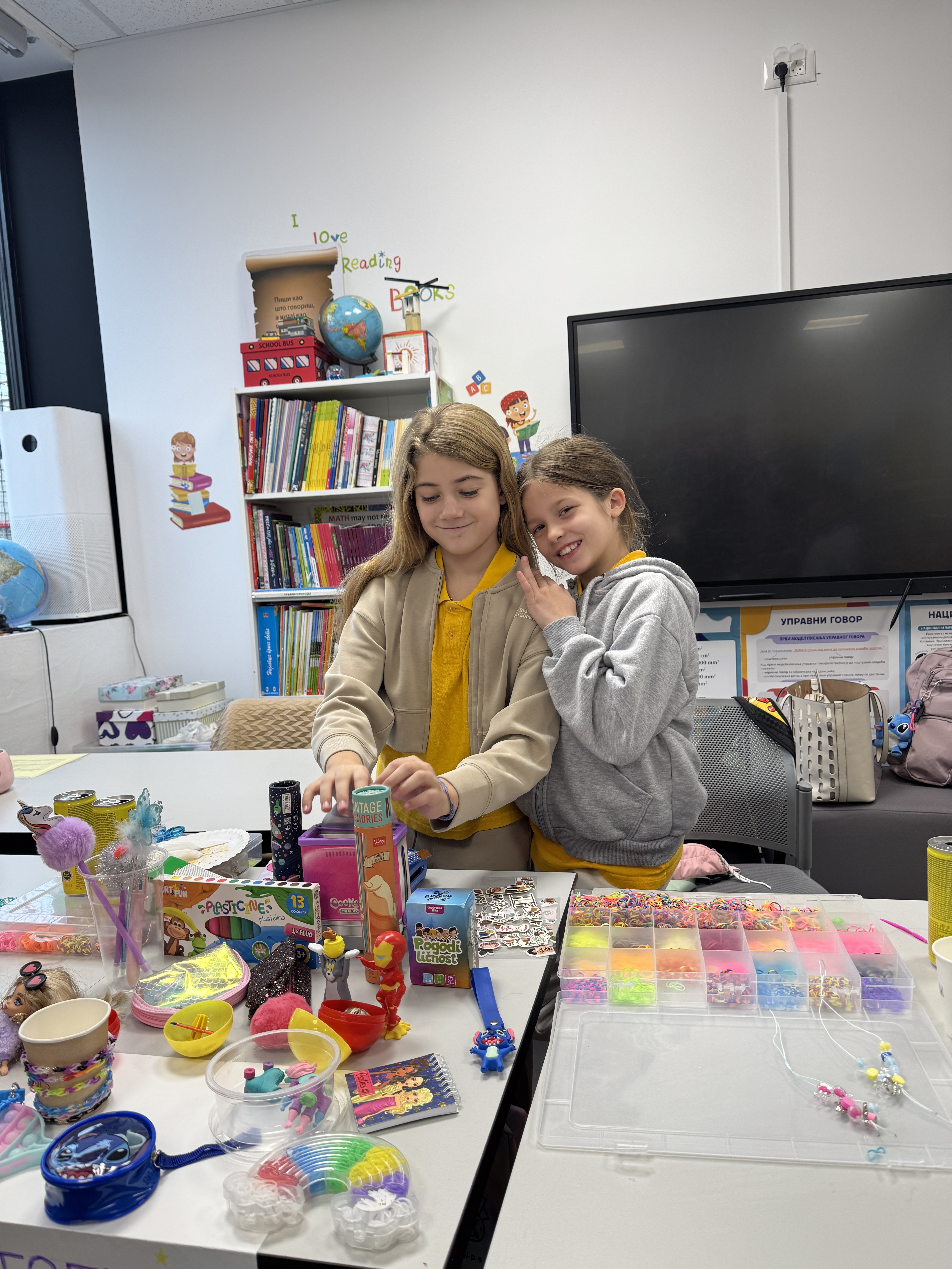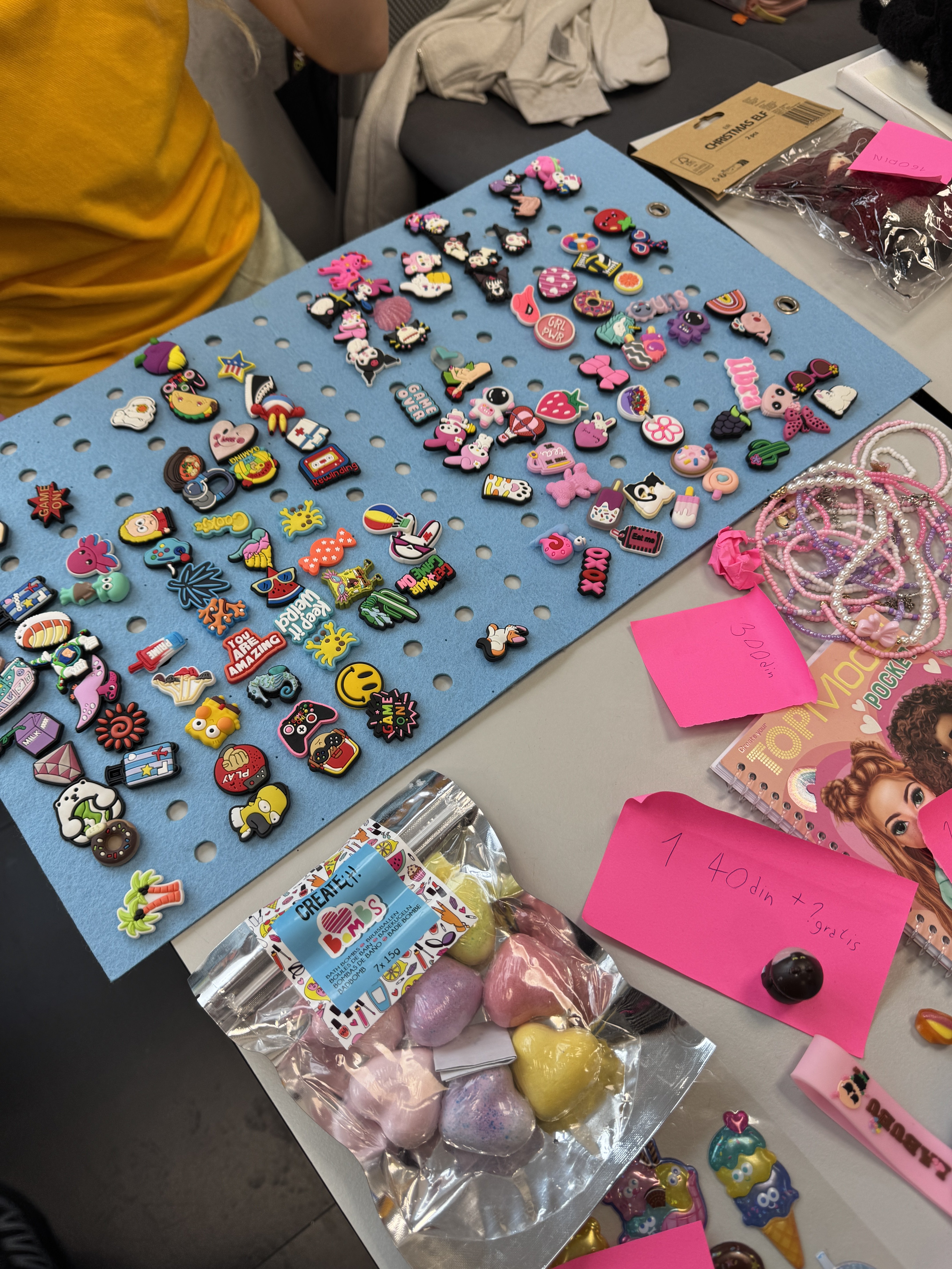 Drugi štandovi bili su prava galerija rukotvorina: deca su pravila narukvice, minđuše od perlica, gumice za kosu, ukrase, pa čak i male figure od gline ili plastelina. Svaki predmet imao je svoju priču — nastao je iz mašte, strpljenja i želje da se drugarima ponudi nešto posebno.