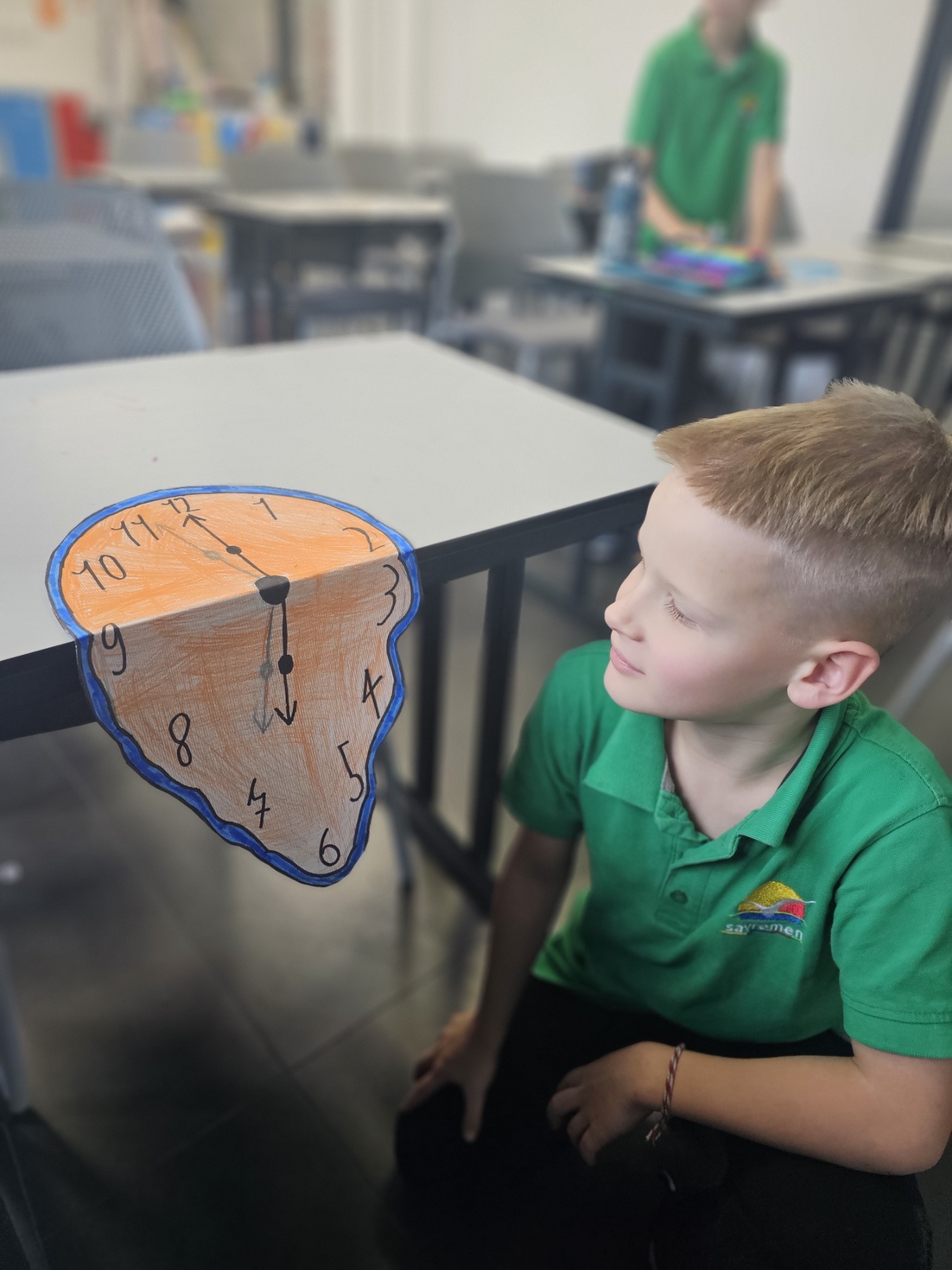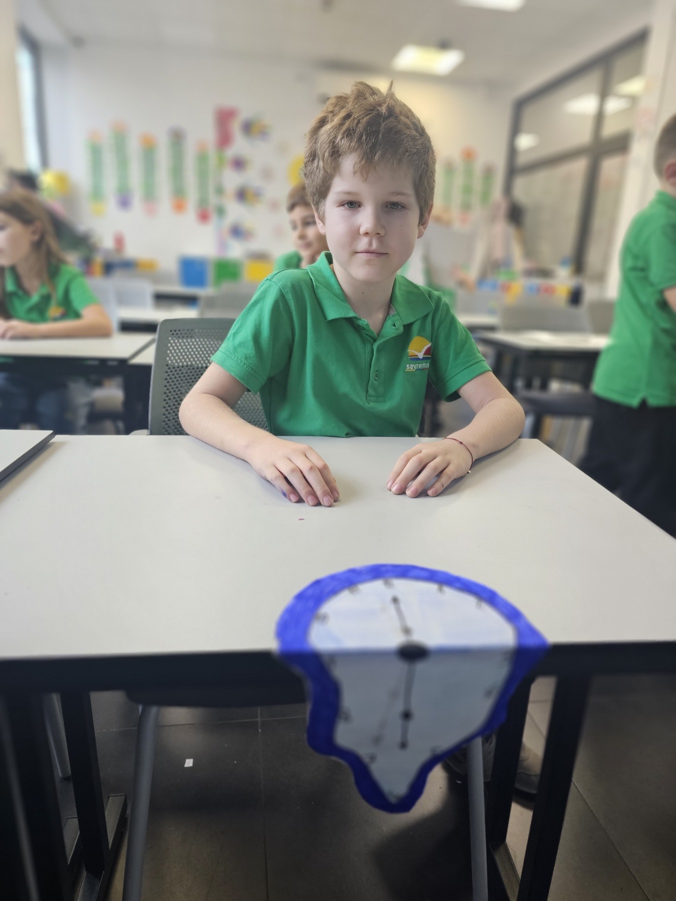 Deca su satove postavila tako da vise preko ivica klupa, baš kao kod Dalija. Time su dobila priliku da razmišljaju i prostorno: kako oblik ide preko ivice, kako senka utiče na izgled, šta se dešava kada se nešto savija u prostoru.