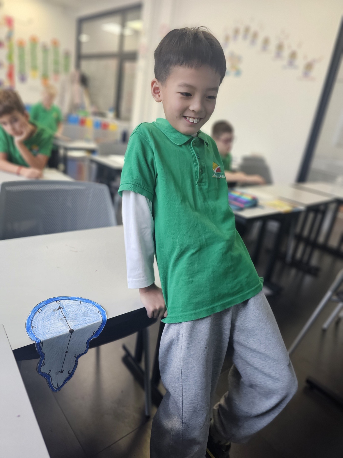 Ključ zadatka bio je jednostavan, ali maštovit: učenici su dobili zadatak da naprave svoj „topljivi sat“, inspirisan Dalijevim vizuelnim svetom u kojem se logika savija, a stvarnost prelazi u san. Uz kolor olovke, flomastere, makaze i puno istraživanja, nastali su radovi koji su istovremeno zabavni, simbolični i začuđujuće promišljeni. U svakom satu vidi se lični pečat deteta – izbor boja, oblik brojčanika, položaj kazaljki, pa čak i način na koji sat „curi“ preko klupe. Jedni su pravili hrabre kontraste, drugi birali pastelne tonove, a neki su oponašali originalnu sliku do najmanjeg detalja.