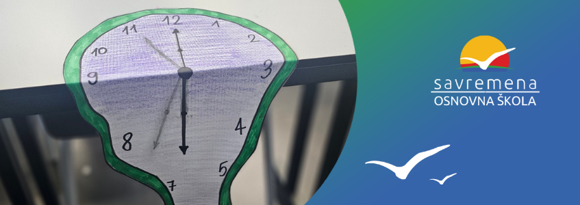 Vreme je na trenutak prestalo da bude ravna, stroga linija i pretvorilo se u mekanu, tečnu formu, baš kao na čuvenoj Dalijevoj slici. Učenici trećeg razreda upoznali su se sa jednim od najprepoznatljivijih simbola nadrealizma – „Upornošću sećanja“ – i zatim pokušali da je ožive na svoj način. Umesto da vreme juri, u njihovoj učionici ono je usporilo, prelomilo se, skliznulo niz ivice klupa i postalo deo jedne potpuno drugačije umetničke priče.