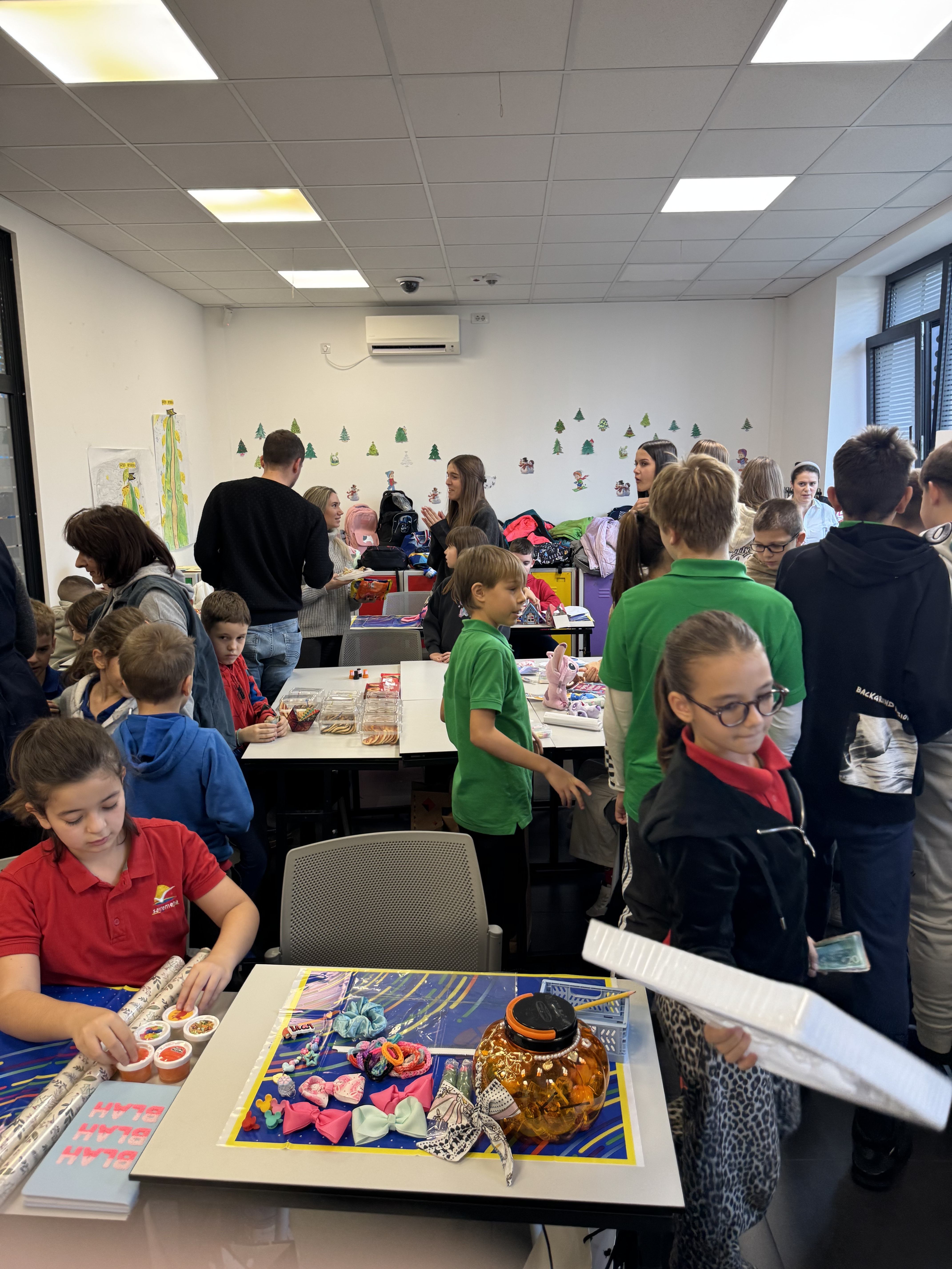 Kad je humanitarni bazar zvanično počeo, škola je postala pravo malo tržište dobročinstva. Učenici su stajali pored svojih tezgi, ponosno predstavljajući proizvode, objašnjavajući šta su pravili i pozivajući sve da kupe nešto ili ostave doprinos. Nastavnici, roditelji i školsko osoblje šetali su između stolova, kupovali, isprobavali i podržavali ovu plemenitu inicijativu. Atmosfera je bila puna smeha, radosti i onog posebnog osećaja zajedništva koje nastaje kada svi rade za isti cilj.