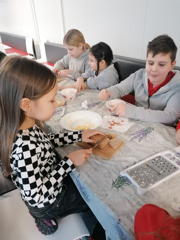 U toku ovih časova, osim o pripremi samog jela, pričali smo i o kompletnom procesu nastanka proizvoda od brašna: od setve do žetve pšenice, preko mlevenja žita, pa do pravljenja hleba ili nekog drugog peciva… Tako đaci povezuju nastavne sadržaje obrađene iz različitih predmeta.