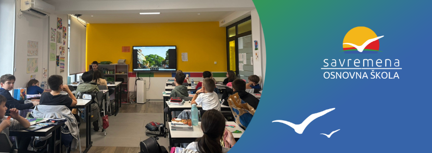 Na interdisciplinarnom času, nastavnica srpskog jezika Marina Gava i nastavnik geografije Petar Mihailović pokazali su koliko je moćno kada se dva predmeta susretnu na jednoj temi i kada učenici dobiju priliku da literarni svet vide iz više uglova. Umesto klasičnog razgovora o lektiri „Doživljaji Toma Sojera”, nastavnici su osmislili čas koji je u sebi spojio glumu, multimediju, virtuelnu geografiju i istraživački rad. Čas je započeo neobičnom scenom: nastavnica Marina pojavila se u okviru improvizovanog „TV ekrana”, predstavljajući čas kao specijalnu epizodu emisije „Nacionalna geografija“, a Petra kao gosta-autora koji će otkriti skrivene geografske tajne Mark Tvenovog romana. Učenici su odmah reagovali oduševljenjem — ideja da se lektira predstavlja kao televizijski program stvorila je atmosferu iščekivanja i pozitivnog iznenađenja, dok je humor nastavnika dodatno razbio tremu i pripremio ih za iskustvo koje nije ličilo ni na jedan čas do sada. Nastavnici su objasnili da će današnji zadatak biti da otkriju šta je u romanu istina, a šta delo piščeve mašte, kako Tven gradi svet svojih likova i kako izgleda prostor koji je bio inspiracija za jednu od najpoznatijih knjiga američke književnosti.