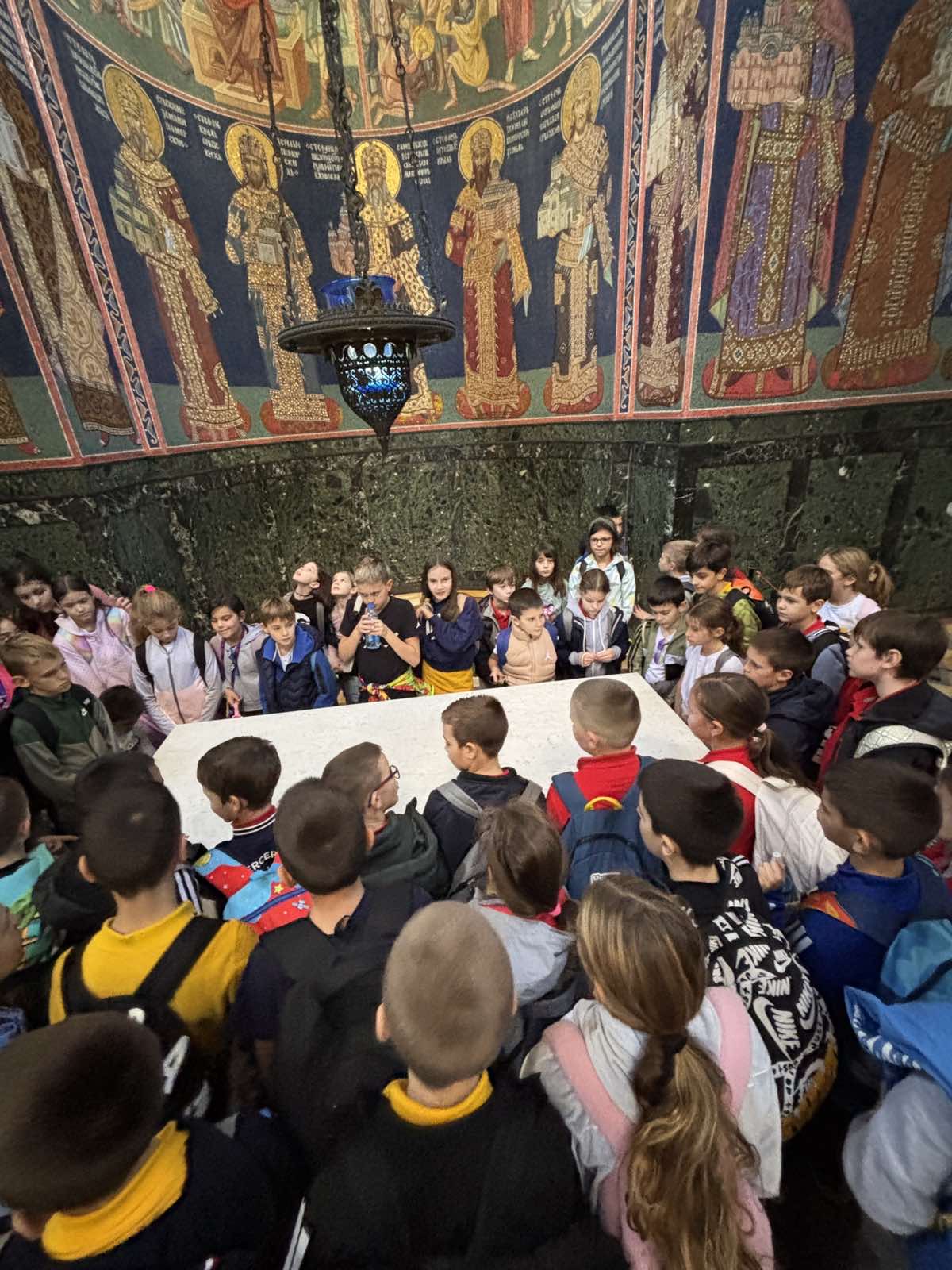 Nakon obilaska Topole, učenici su posetili veličanstvenu Crkvu Svetog Đorđa na Oplencu, zadužbinu dinastije Karađorđević, koja je ostavila snažan utisak na sve prisutne. Učenici su s divljenjem posmatrali mozaike od više od 40 miliona kamenčića, koji prikazuju najvažnije scene iz srpske istorije i pravoslavne umetnosti. Svaki korak kroz ovu svetinju bio je lekcija o umetnosti, veri i duhovnom identitetu našeg naroda.