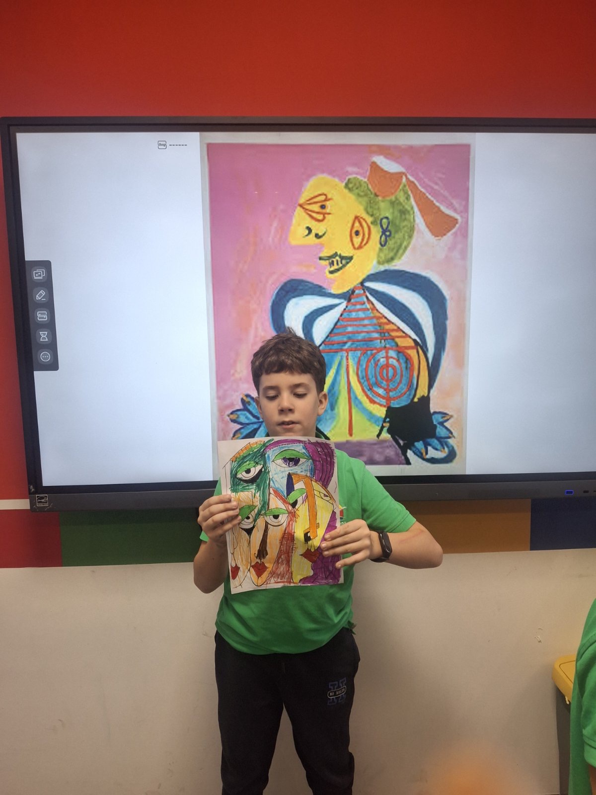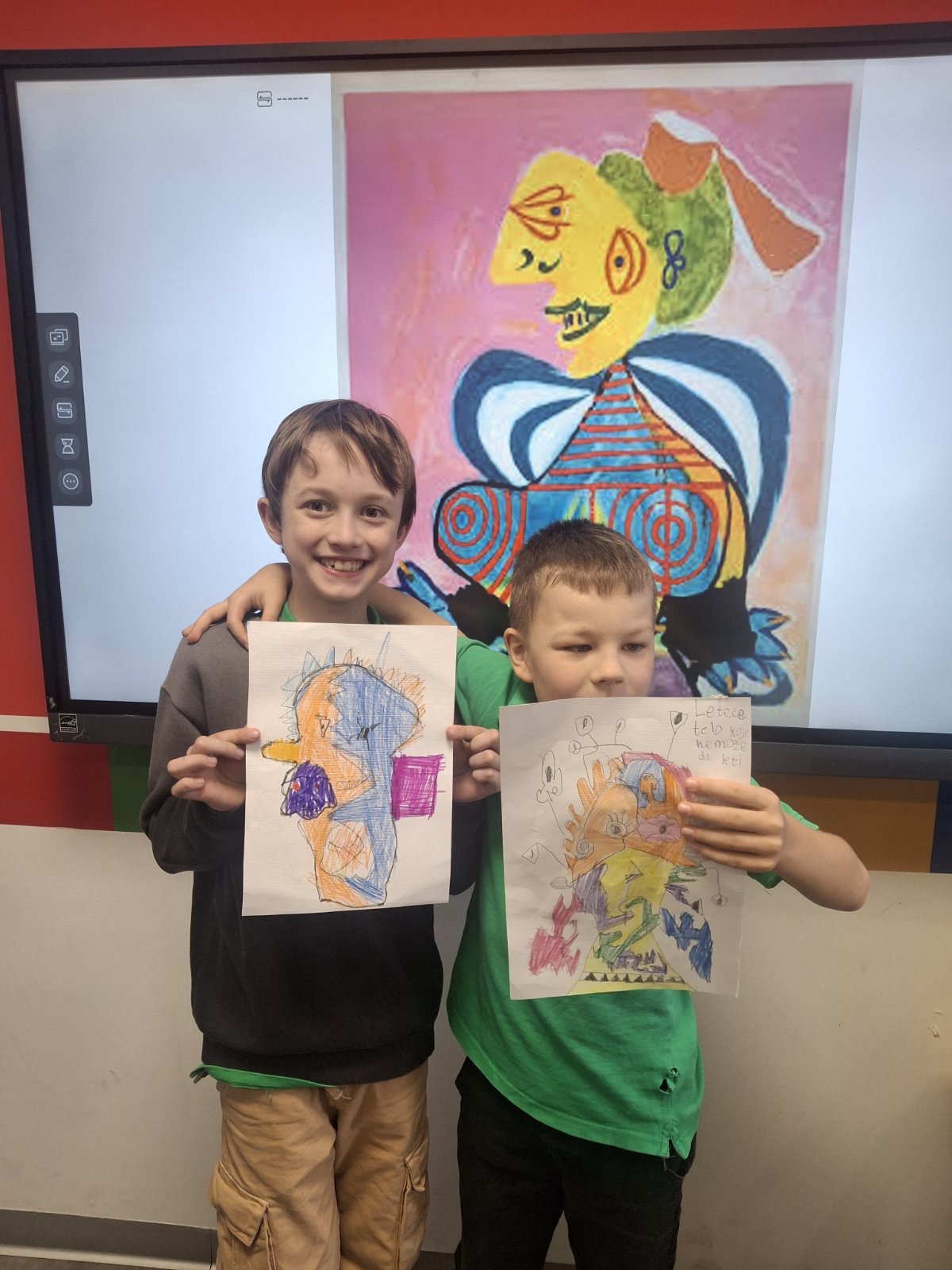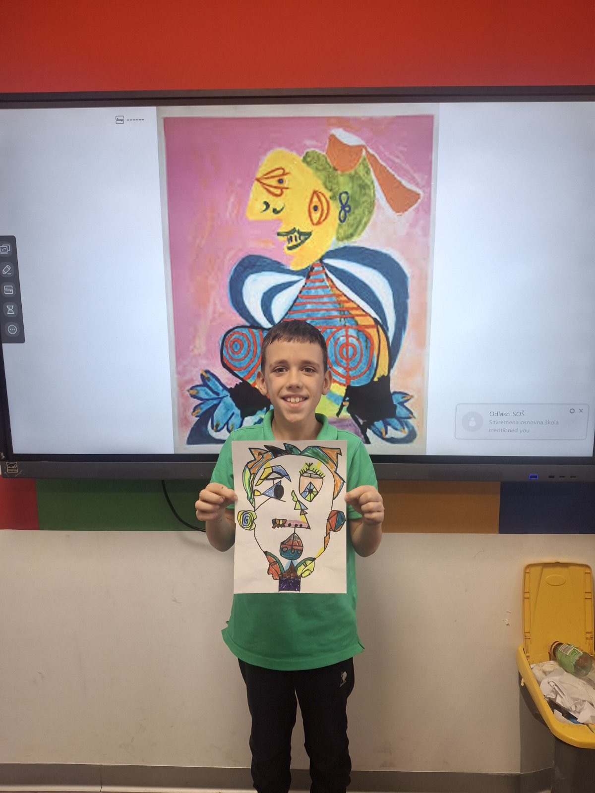 Na času likovne kulture u Savremenoj osnovnoj školi, učenici su zakoračili u svet jednog od najuticajnijih umetnika 20. veka – Pabla Pikasa. Kroz analizu njegovog prepoznatljivog kubističkog stila, Savremenci su istraživali kako se lice može prikazati iz više uglova istovremenom, kako geometrijske forme grade emociju, i zašto umetnost ne mora da bude realistična da bi bila snažna. Cilj nije bio da se Pikaso kopira, već da se razume – a onda da svako pronađe svoj način da tu inspiraciju pretoči u crtež koji nosi lični pečat.
