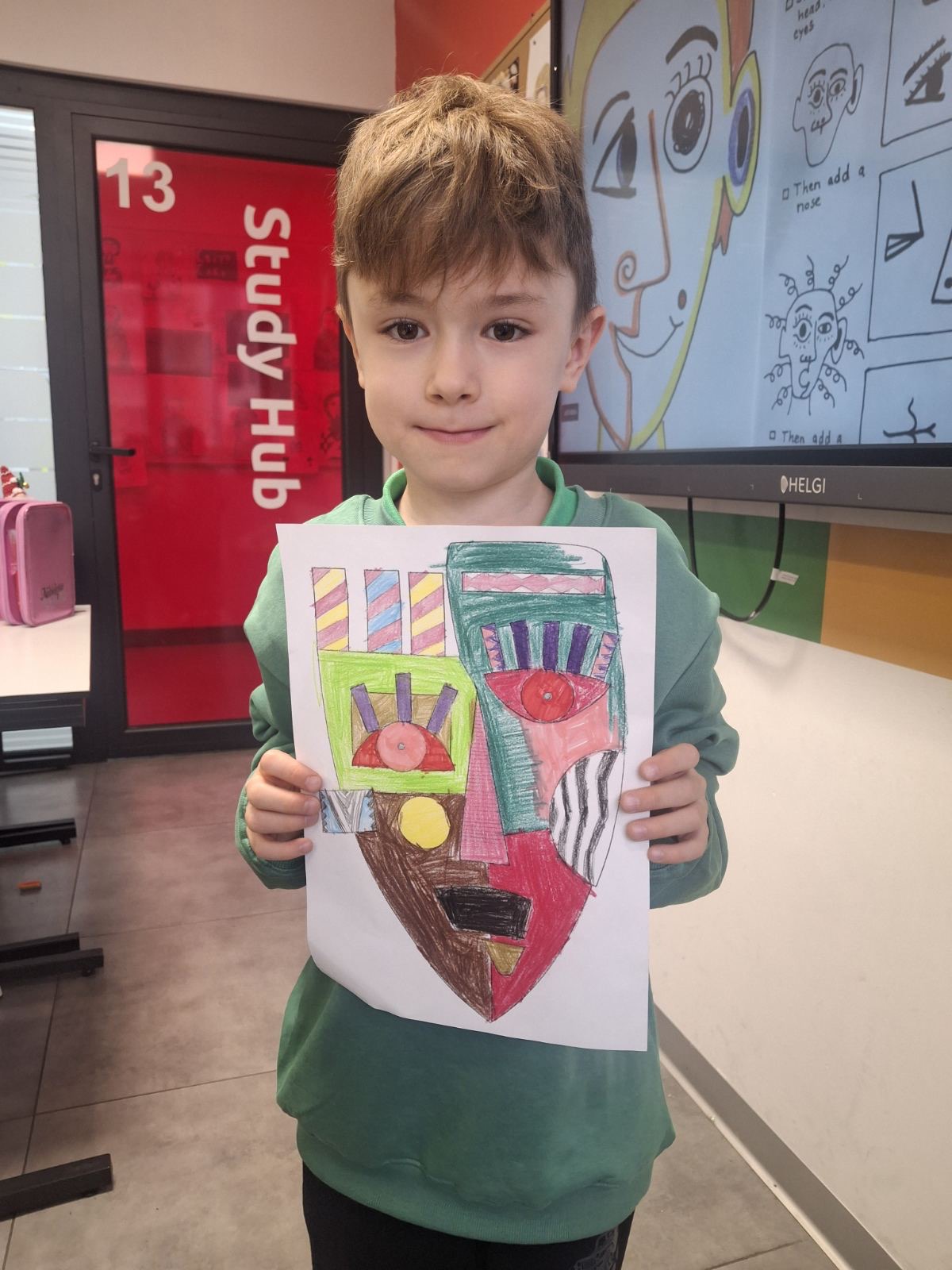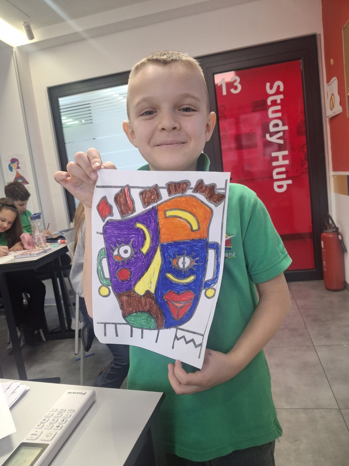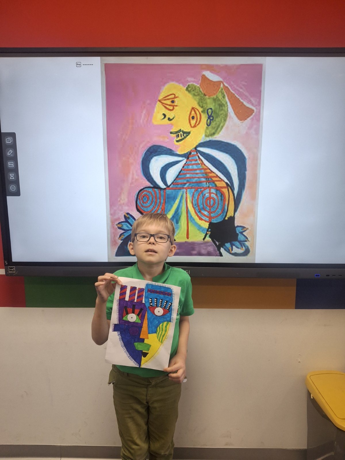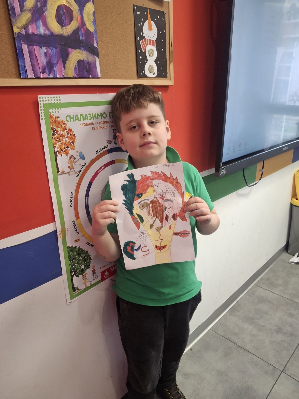 Na času likovne kulture u Savremenoj osnovnoj školi, učenici su zakoračili u svet jednog od najuticajnijih umetnika 20. veka – Pabla Pikasa. Kroz analizu njegovog prepoznatljivog kubističkog stila, Savremenci su istraživali kako se lice može prikazati iz više uglova istovremenom, kako geometrijske forme grade emociju, i zašto umetnost ne mora da bude realistična da bi bila snažna. Cilj nije bio da se Pikaso kopira, već da se razume – a onda da svako pronađe svoj način da tu inspiraciju pretoči u crtež koji nosi lični pečat.