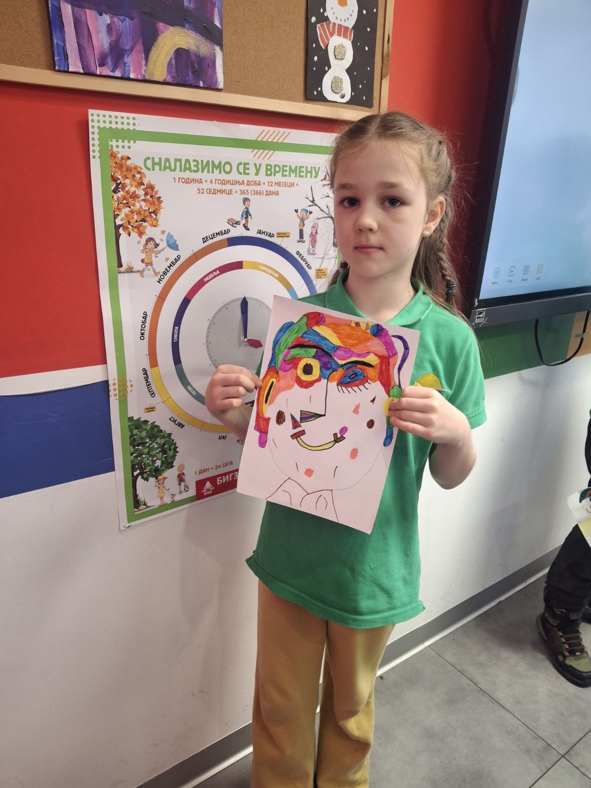 Pre nego što su posegnuli za bojama i markерima, razgovor je bio ključan. Šta čini kubizam prepoznatljivim? Kako Pikaso razlaže lice na fragmente, a zatim ga ponovo sastavlja na nov, neočekivan način? Kako boja, linija i forma zajedno stvaraju karakter? Učenici su posmatrali reprodukcije dela, postavljali pitanja, razmenjivali utiske. I shvatili nešto važno – da umetnost počinje sa slobodom da se svet vidi drugačije.