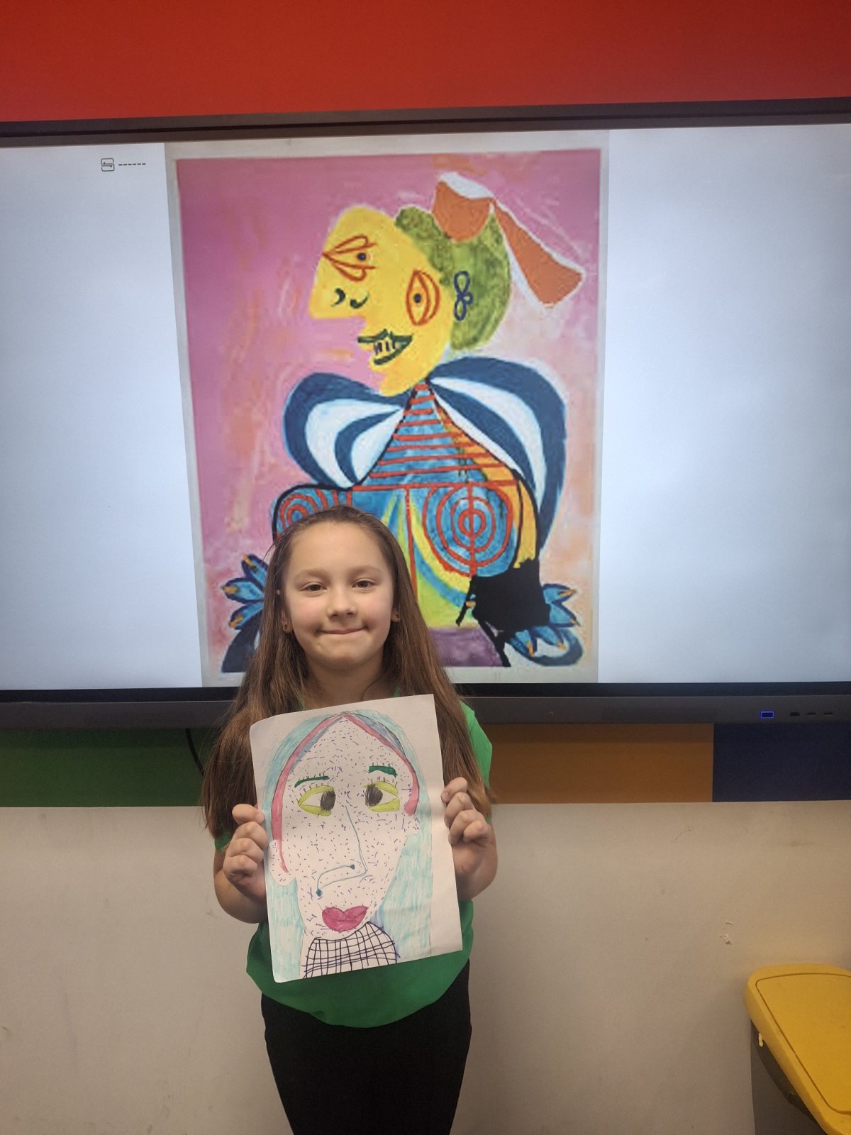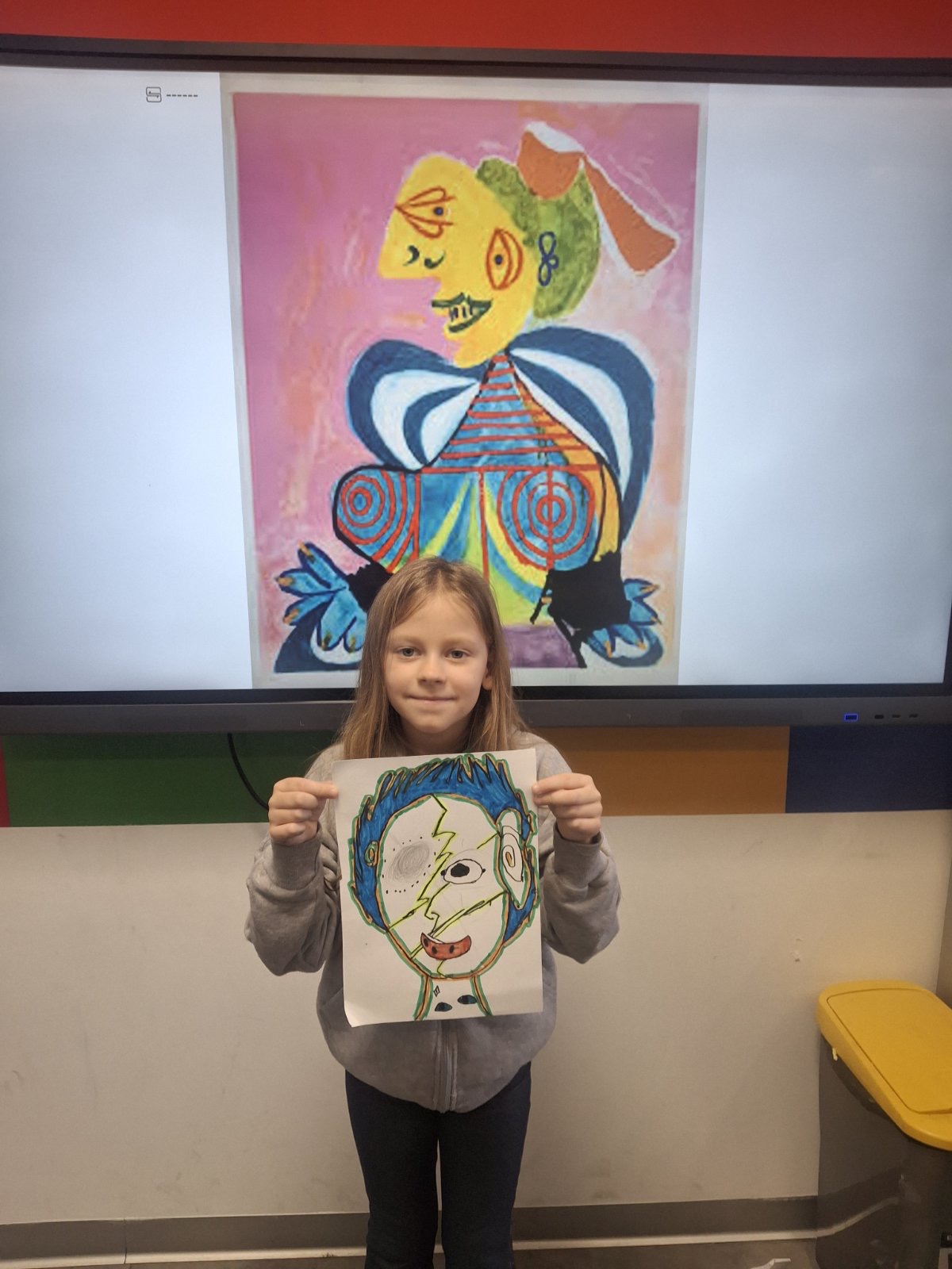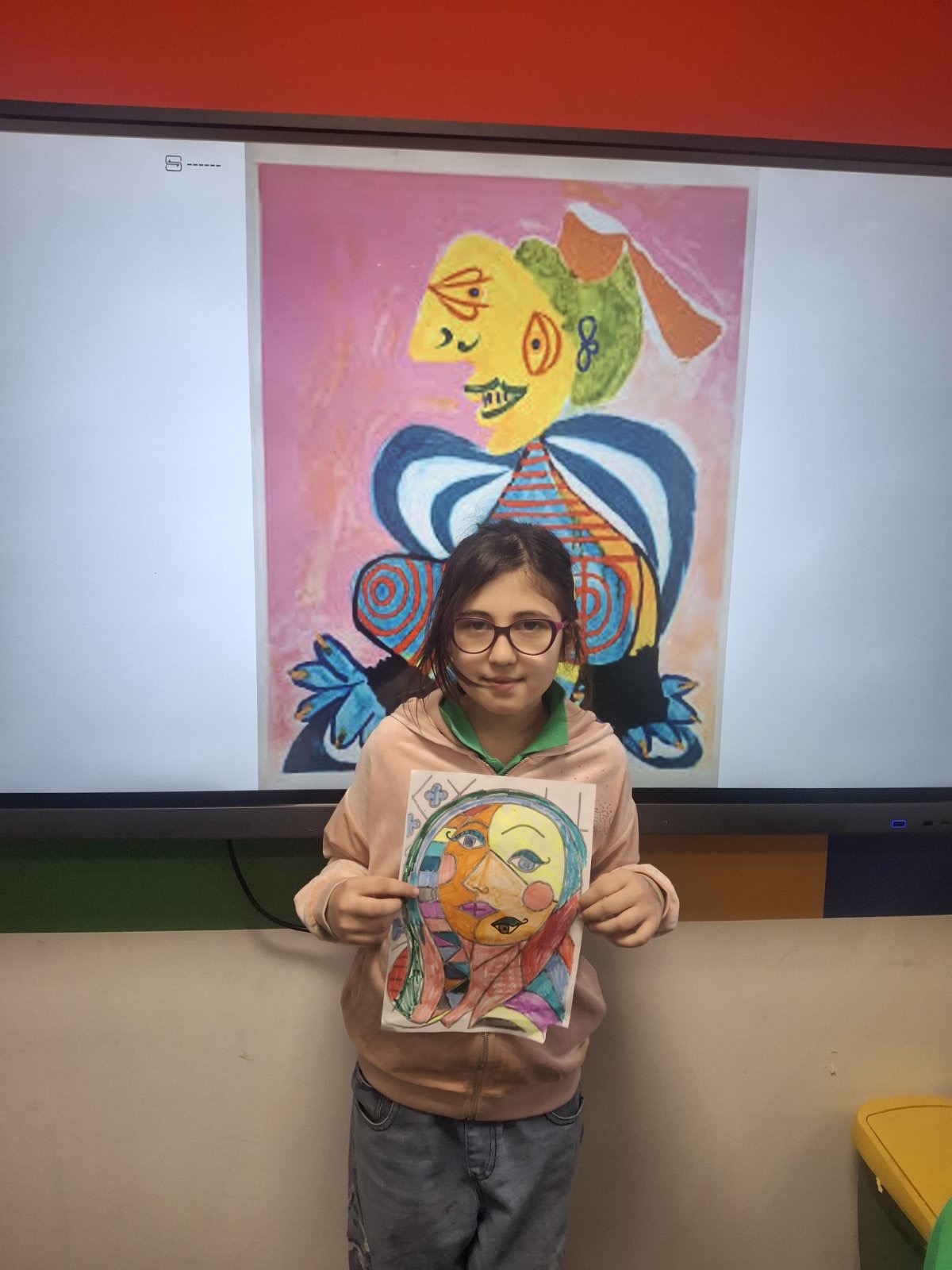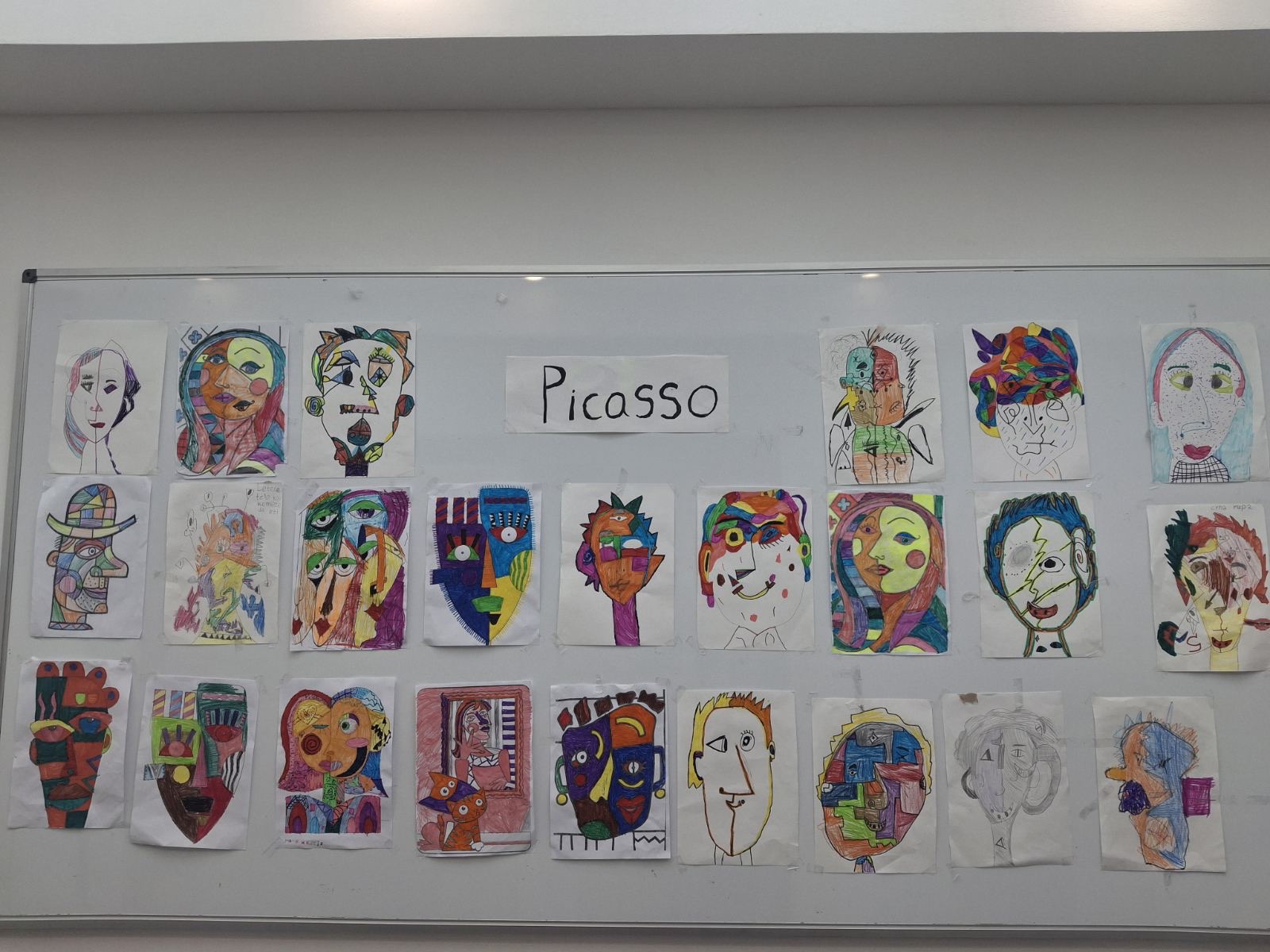 U praktičnom delu časa, učionici su se pretvorile u male ateljee. Svaki učenik kreirao je portret inspirisan Pikasovim pristupom – podeljeno lice, asimetrija, neobične proporcije, smelе boje. Neki su se odlučili za oštre kontraste i dinamične linije, drugi za nežnije tonove i igru uzoraka. Rezultat? Nijedan rad nije ličio na drugi. Iako su svi polazili iz istog zadatka, svaki crtež nosio je ličnu interpretaciju, temperament i umetničku hrabrost svog autora.