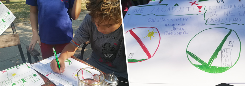 Šarene rukavice i paketići nisu jedini elementi kojima su učenici raspolagali – poneli su i flomastere, markere i kolaž, koji su im poslužili da naprave ekološke porukice za prolaznike.